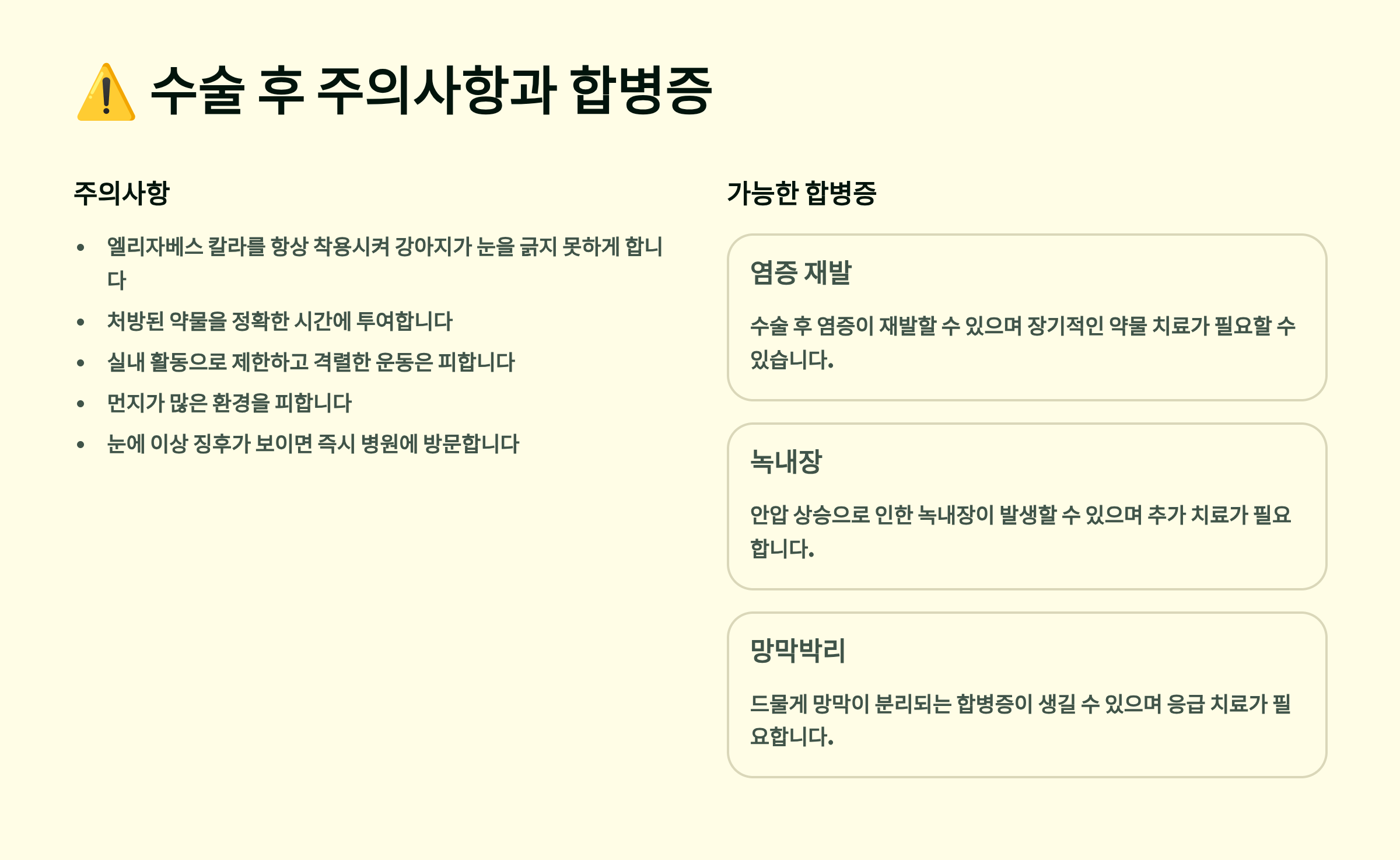⚠️ 수술 후 주의사항과 합병증