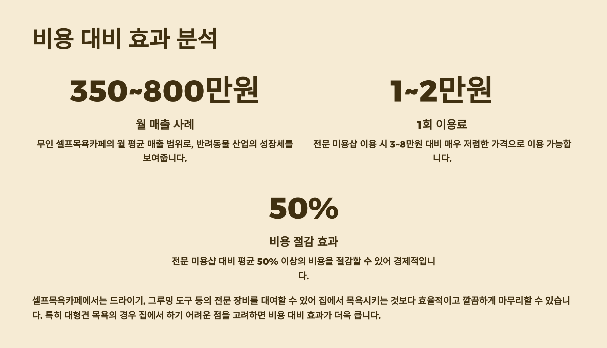 | 구분 | 셀프목욕 | 미용실 | 연간 절약액 |