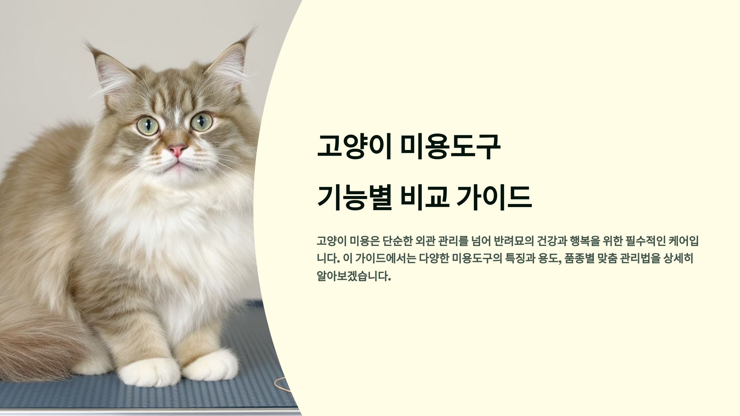 이 가이드에서는 다양한 고양이 미용도구의 기능과 특징을 상세히 비교하고, 각 도구의 올바른 사용법과 선택 기준을 제시해요. 초보 집사부터 경험 많은 집사까지 모두에게 도움이 될 실용적인 정보를 담았답니다. 함께 우리 고양이에게 맞는 최적의 미용도구를 찾아보아요! 🐾