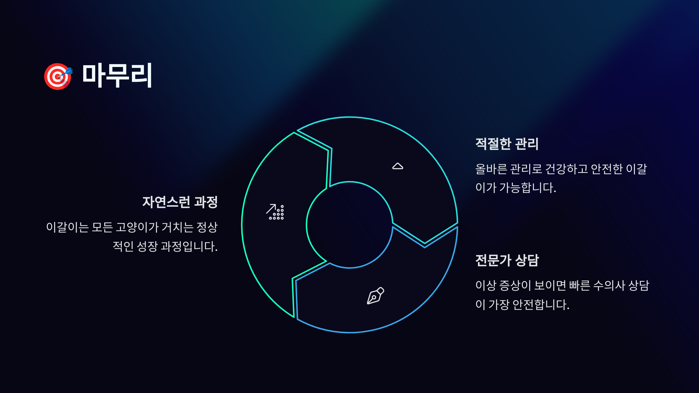고양이의 이갈이는 건강한 성장을 위해 꼭 거쳐야 하는 자연스러운 과정이에요. 비록 집사에게는 걱정스럽고 힘든 시기일 수 있지만, 올바른 지식과 적절한 대처법을 알고 있다면 충분히 잘 넘길 수 있어요. 무엇보다 중요한 것은 고양이의 상태를 꾸준히 관찰하고, 필요할 때 전문가의 도움을 받는 거예요. 이갈이가 끝나면 고양이는 건강한 영구치를 가지게 되고, 집사와의 유대감도 더욱 깊어질 수 있답니다.