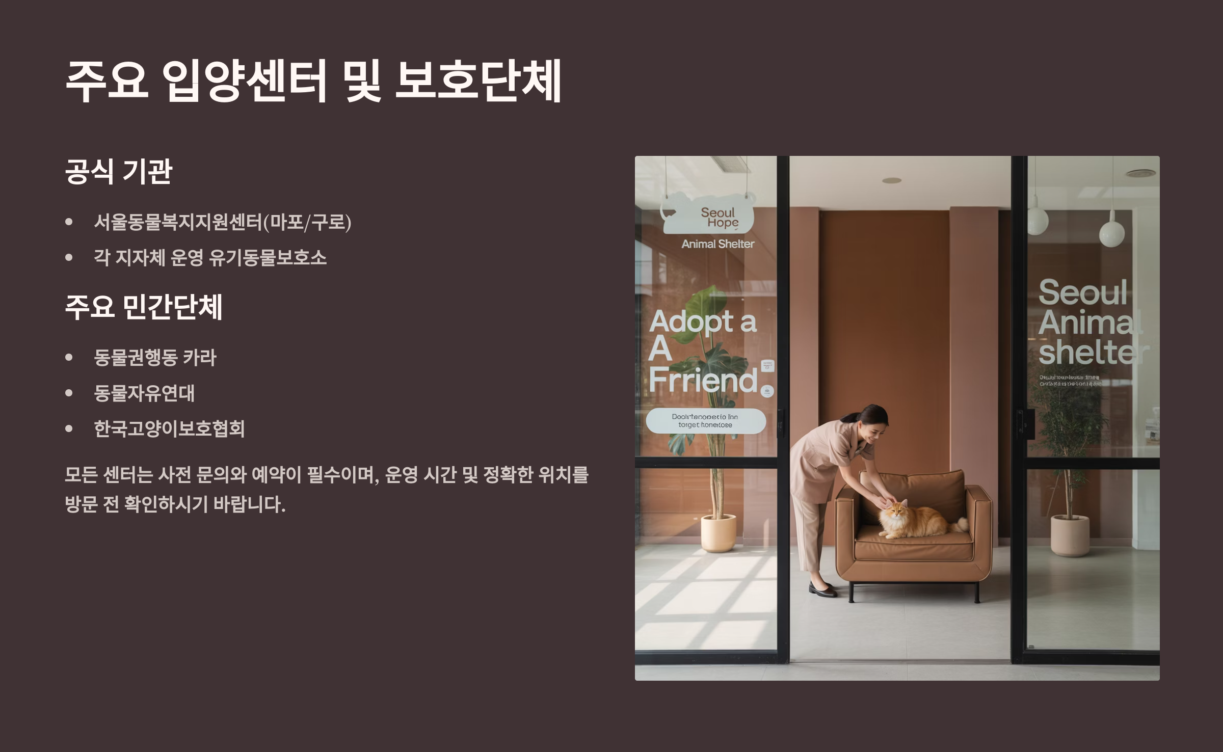 🏢 주요 입양센터 및 보호단체