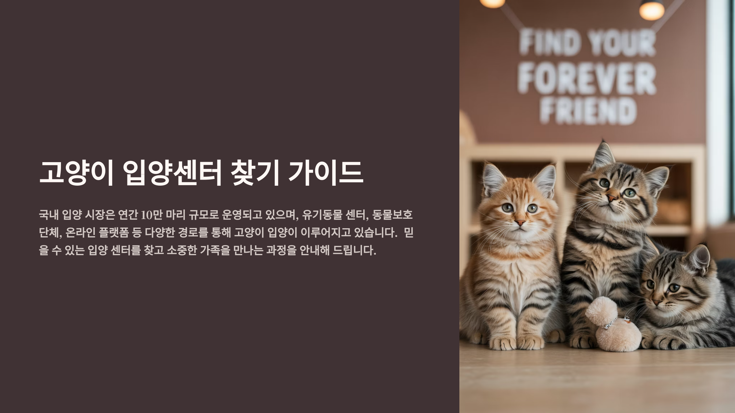 고양이 입양은 단순히 귀여운 동물을 집에 데려오는 것이 아니라, 한 생명과 함께하는 긴 여정의 시작이에요. 이 가이드를 통해 전국의 입양센터와 보호소, 온라인 플랫폼, 입양 절차, 그리고 입양 후 관리까지 모든 정보를 상세히 알아봤어요. 이제 여러분도 충분한 준비와 지식을 갖추고 운명의 고양이를 만날 준비가 되었을 거예요! 🐱💕