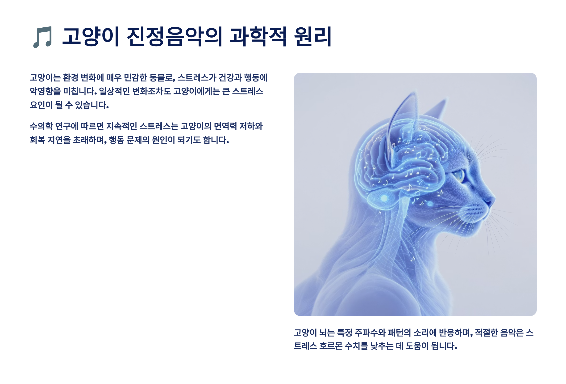 많은 반려인들이 궁금해하는 '고양이 진정음악'의 실제 효과와 올바른 활용법을 자세히 알아볼게요. 동물병원 방문이나 이사, 새로운 가족 구성원 등으로 인한 스트레스 상황에서 음악이 어떻게 도움이 되는지, 그리고 우리 집 고양이에게 맞는 음악을 찾는 방법까지 함께 살펴보겠습니다! 🎶