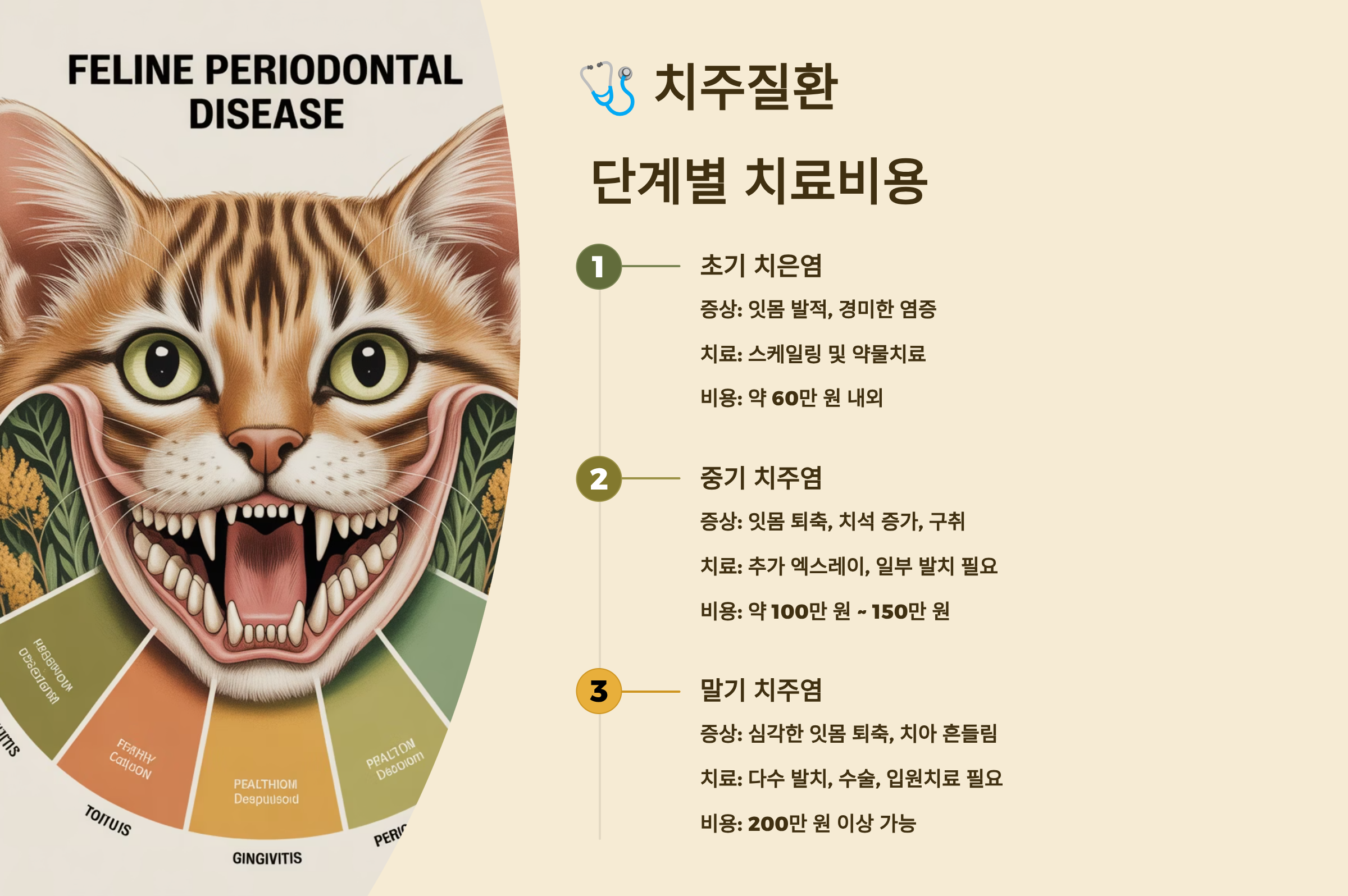 고양이 치주질환은 진행 단계에 따라 치료 방법과 비용이 크게 달라져요. 치주질환은 크게 4단계로 나뉘는데, 1단계는 치은염, 2단계는 초기 치주염, 3단계는 중등도 치주염, 4단계는 심한 치주염으로 분류돼요. 각 단계별로 필요한 치료와 예상 비용을 자세히 알아볼게요.