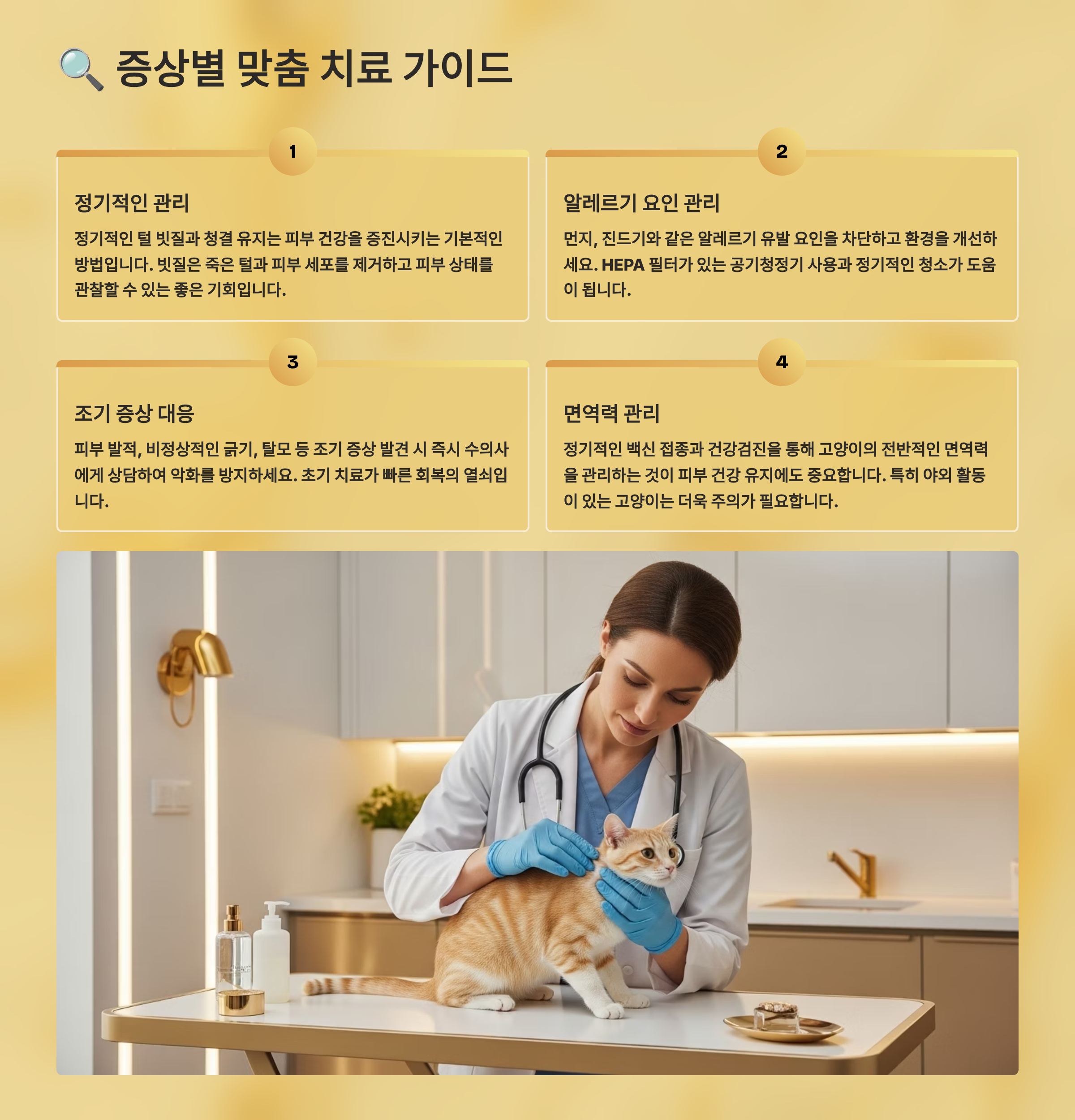 | 전문 약물 치료 | 빠른 증상 개선 | 고양이 스트레스 감소 |