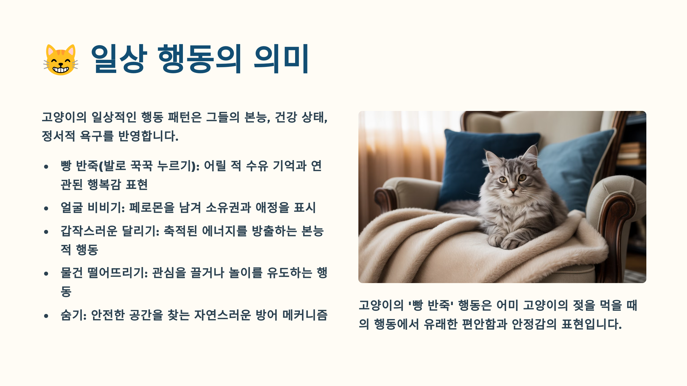 고양이의 일상적인 행동 하나하나에도 특별한 의미가 담겨 있어요. 그루밍, 스크래칭, 마킹 등 평범해 보이는 행동들도 자세히 관찰하면 고양이의 건강 상태와 감정을 파악할 수 있답니다. 이런 행동들을 이해하면 고양이가 필요로 하는 것을 미리 알아차릴 수 있어요.