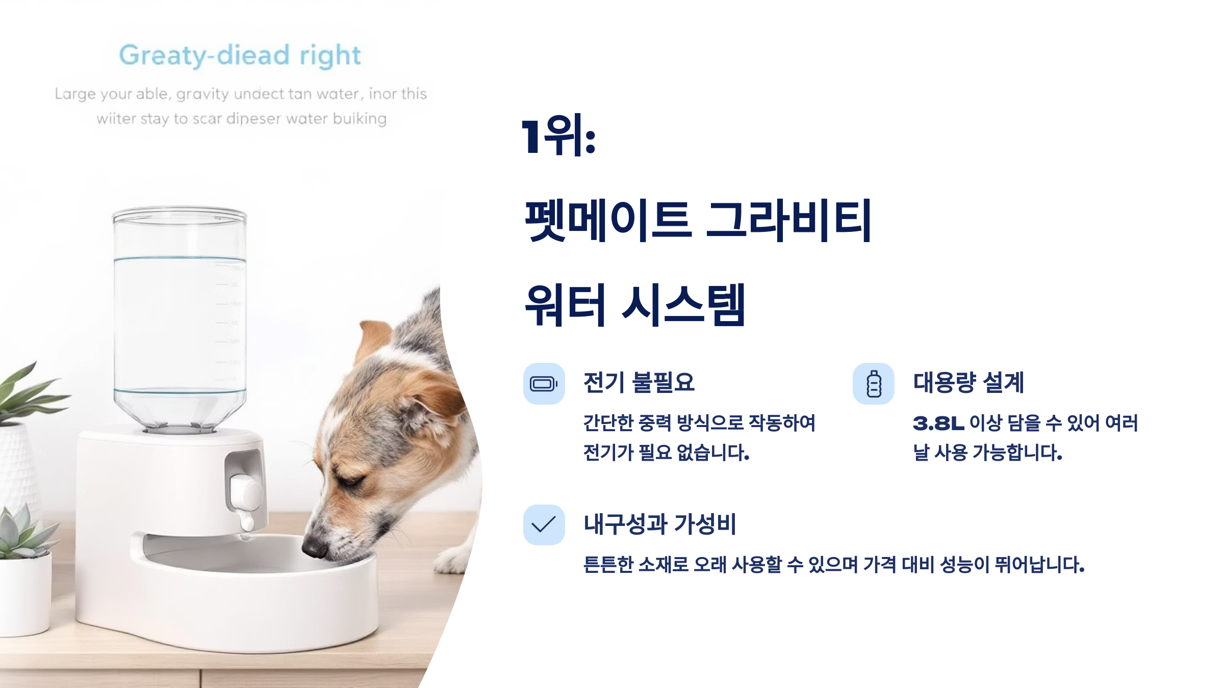 기능보단 단순함을 선호한다면 이 제품이 딱이에요. 유지비도 거의 들지 않고, 설치 후 손이 덜 가서 바쁜 보호자들에게는 완벽한 선택이에요! 🐶