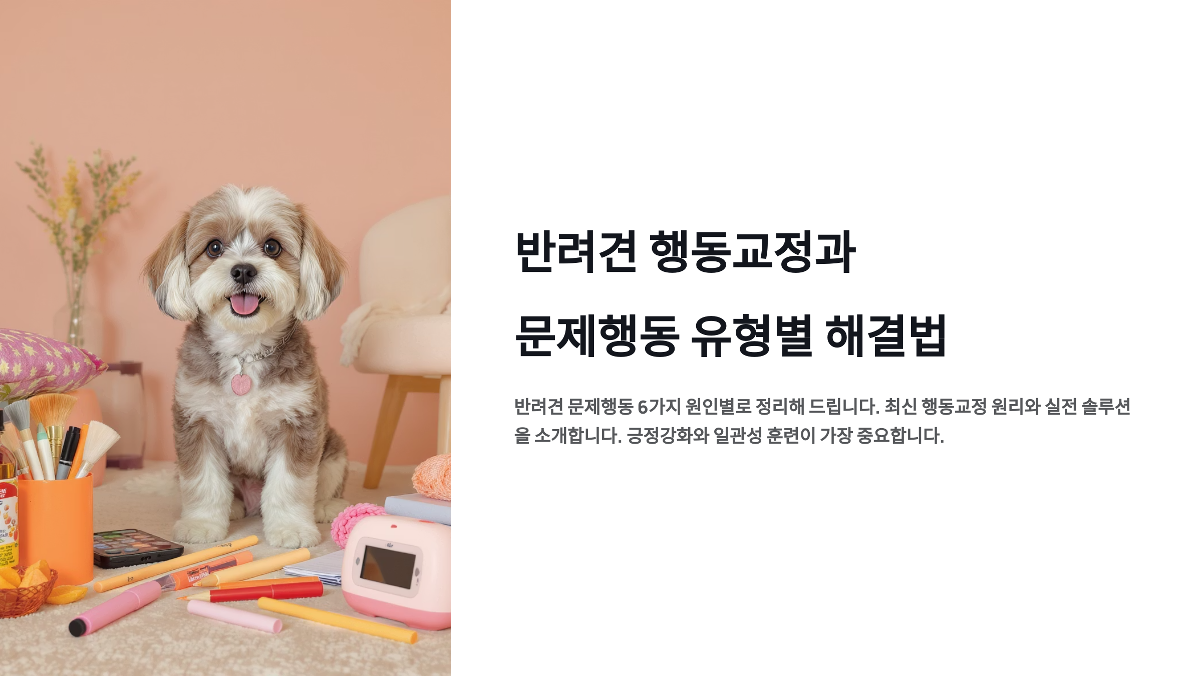 문제행동의 근본 원인을 이해하고 해결하려는 노력이 가장 중요해요. 단순히 증상만 억제하려 하지 말고, 왜 그런 행동을 하는지 강아지의 입장에서 생각해보세요. 충분한 운동과 정신적 자극, 안정적인 환경과 일관된 훈련이 모든 행동교정의 기본이에요. 강아지와의 신뢰 관계를 바탕으로 한 긍정적인 훈련이 가장 효과적이고 지속적인 결과를 가져다줄 거예요. 함께 행복한 반려생활을 만들어가시길 바랍니다!