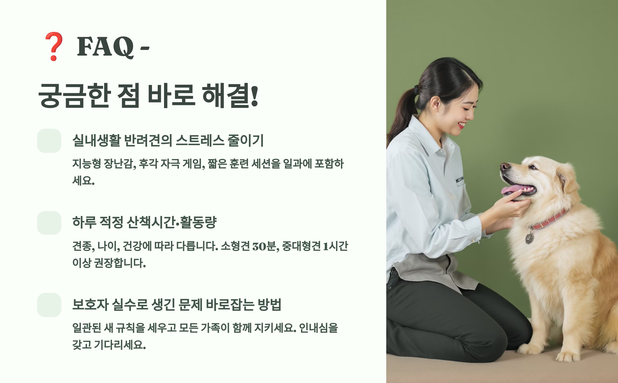 Q4. 훈련사에게 맡기는 것과 직접 하는 것 중 뭐가 나은가요?