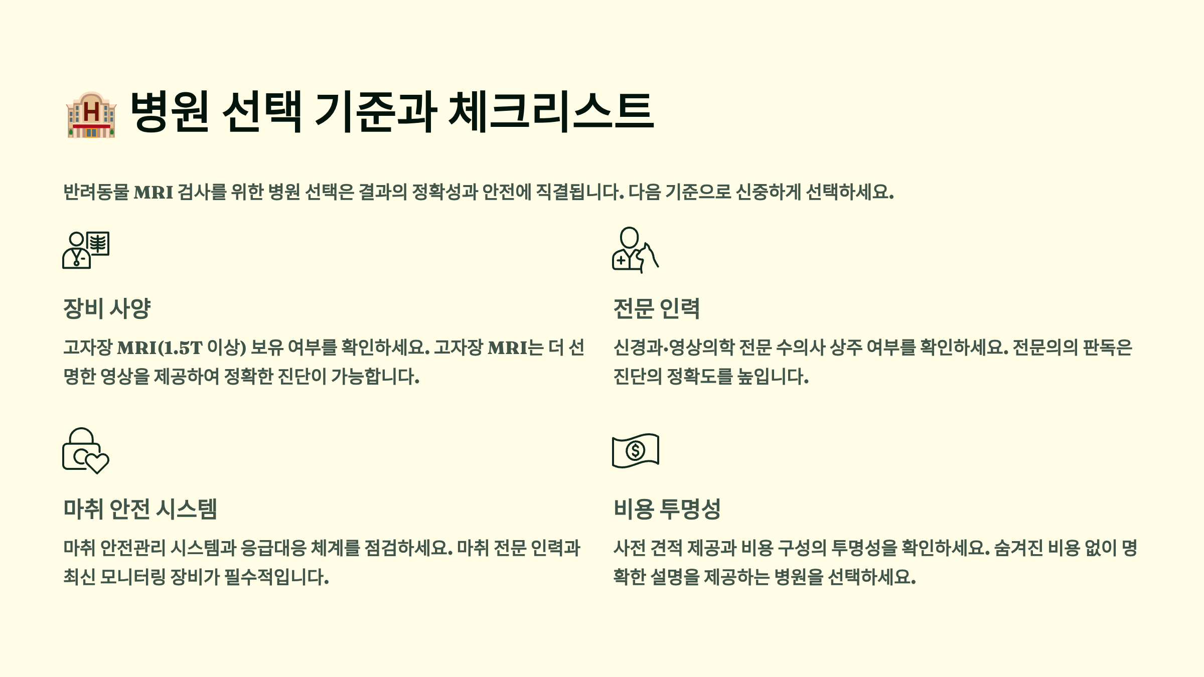 검사 전 충분한 준비와 병원 선택이 중요해요. 믿을 수 있는 병원에서 전문 의료진의 관리 하에 검사를 받으면 마취 위험도 최소화할 수 있어요. 펫보험이나 의료비 적립 등으로 경제적 부담을 줄이는 방법도 미리 준비하면 좋겠죠.