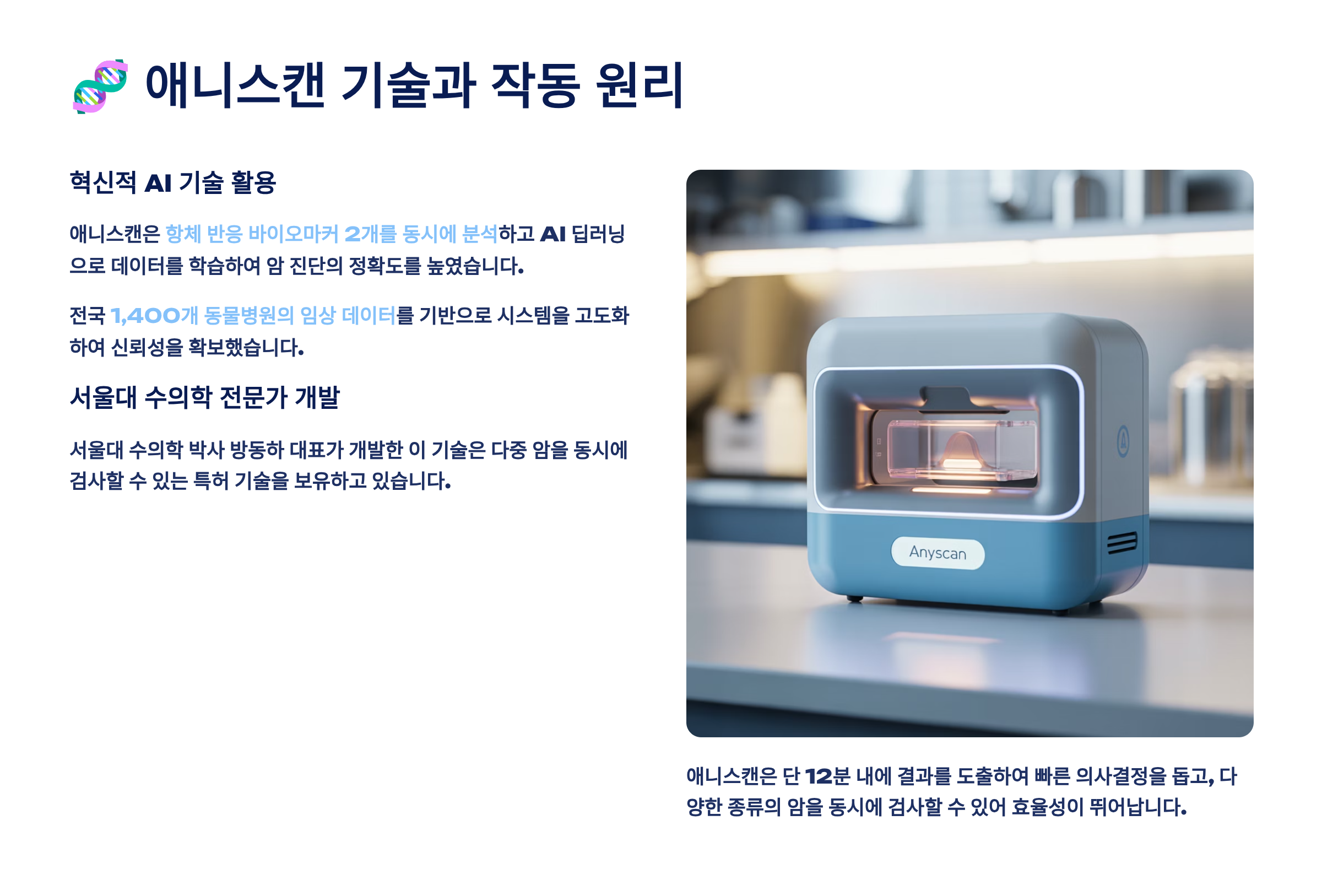 | 애니스캔 | 바이오마커 검사 | 12~15분 | 혈액 |