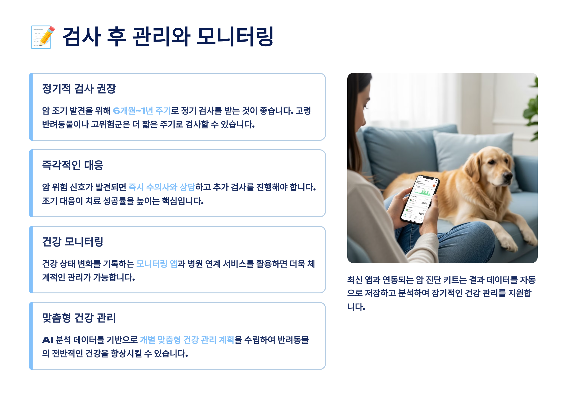 오늘 반려동물 암 진단 키트에 대해 자세히 알아봤어요. 애니스캔과 펫디 같은 혁신적인 제품들이 우리 아이들의 건강을 지키는 든든한 도우미가 되고 있네요. 기존 40만원이던 검사비가 2~10만원으로 줄어들고, 정확도는 89~95%에 달한다니 정말 놀라워요! 🌟