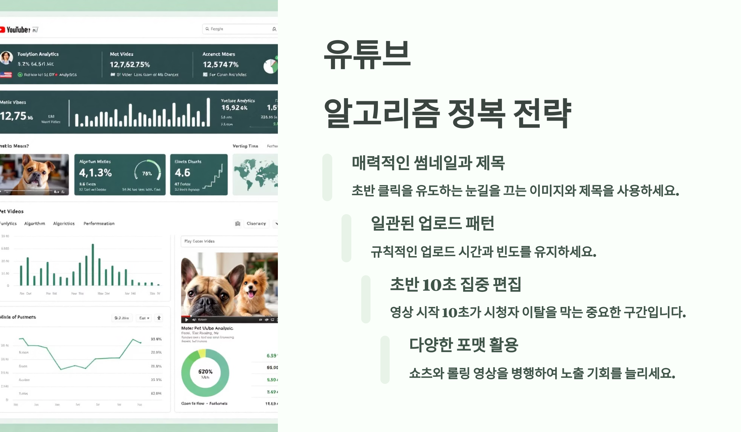 유튜브 알고리즘을 이해하는 것은 성공적인 채널 운영의 핵심이에요. 2024년 현재 유튜브 알고리즘은 시청 시간, 클릭률, 댓글과 좋아요 등의 참여도, 그리고 시청 완료율을 가장 중요하게 생각해요. 반려동물 콘텐츠의 경우 평균 시청 시간이 다른 카테고리보다 길어서 알고리즘에 유리한 편이에요. 하지만 처음 15초가 가장 중요하다는 점을 기억하세요.