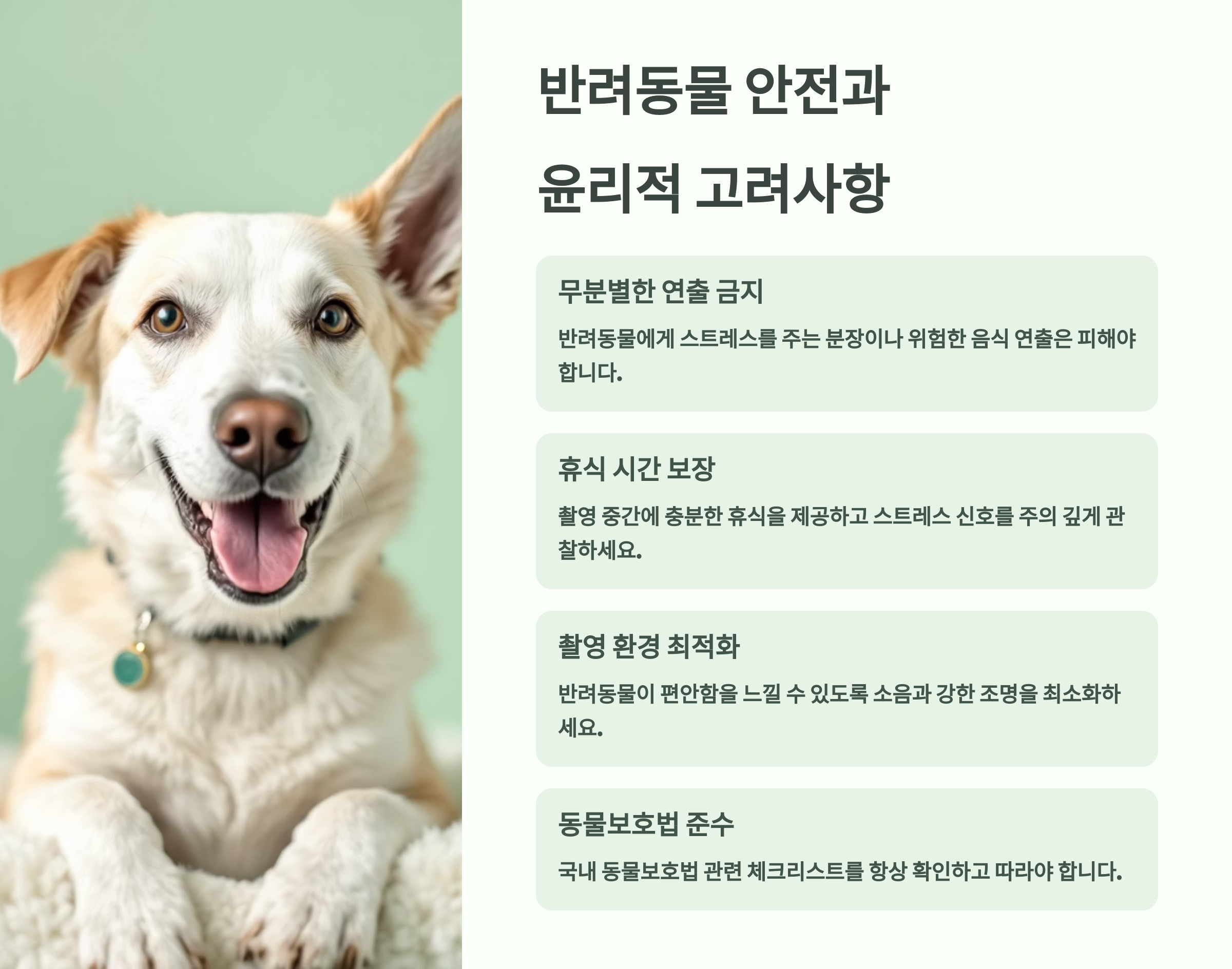 특히 위험한 콘텐츠는 절대 피해야 해요. 반려동물이 먹으면 안 되는 음식을 주는 것, 높은 곳에서 점프시키기, 무리한 의상 착용, 큰 소음에 노출시키기 등은 매우 위험해요. 2023년에 해외에서 반려동물 학대 논란으로 채널이 삭제되거나 법적 처벌을 받은 사례들이 여러 번 있었어요. 우리나라에서도 동물보호법이 강화되고 있어서 더욱 주의해야 해요.