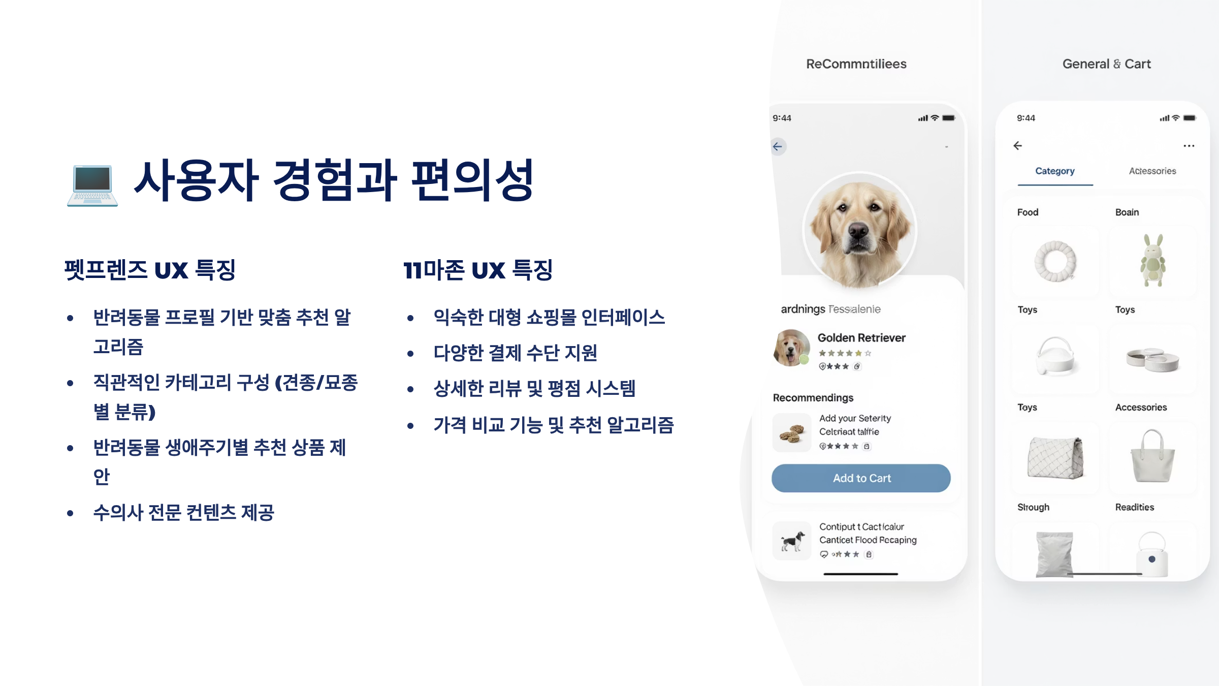 11마존은 11번가의 기술력을 바탕으로 안정적인 서비스를 제공해요. 대용량 트래픽에도 끊김 없는 서비스, 빠른 페이지 전환, 안정적인 결제 시스템 등이 강점이죠. 다만 반려동물 카테고리에 특화된 기능은 펫프렌즈에 비해 부족한 편이에요.