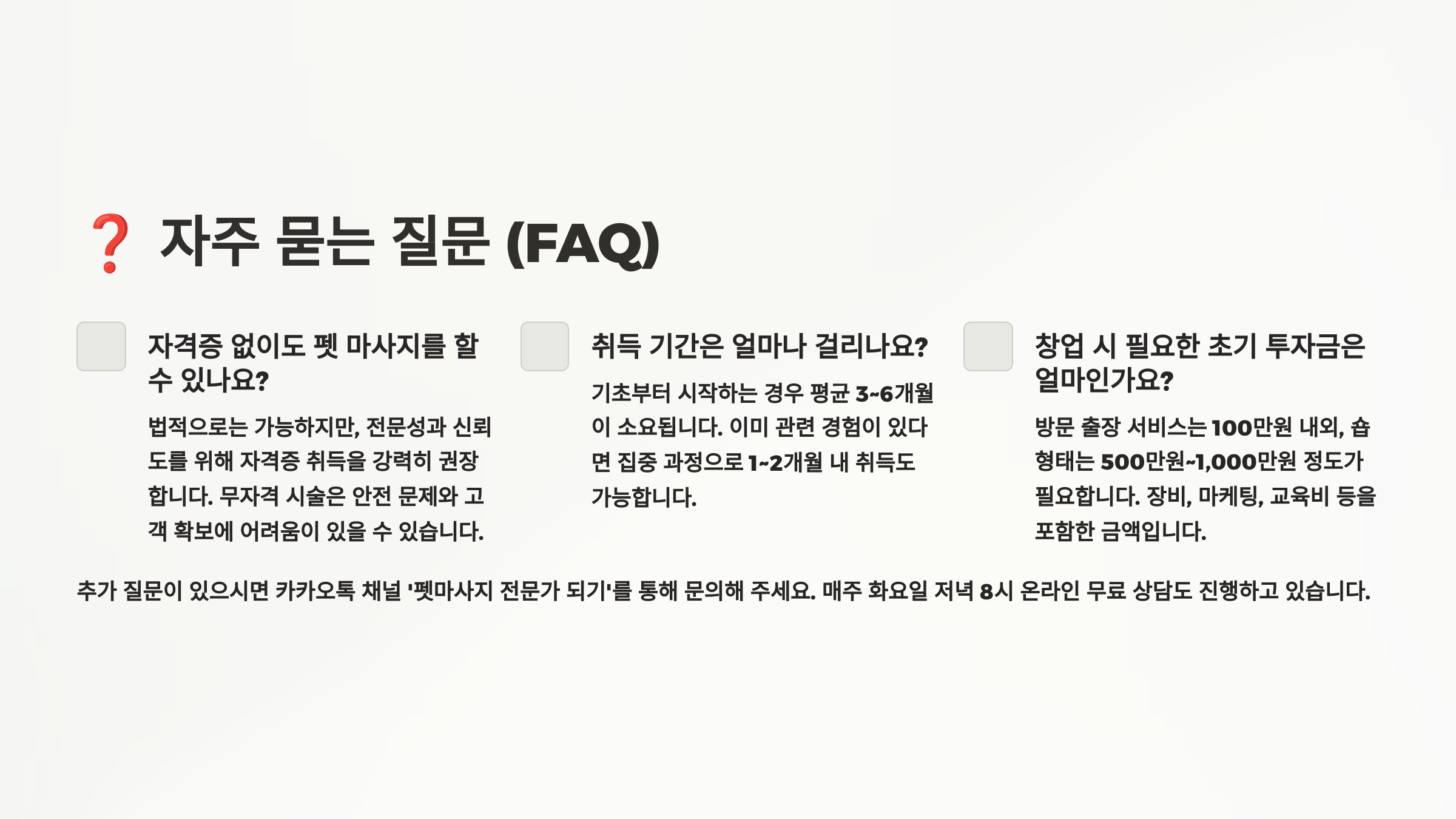 Q7. 펫 마사지 자격증의 갱신이나 보수교육이 필요한가요?