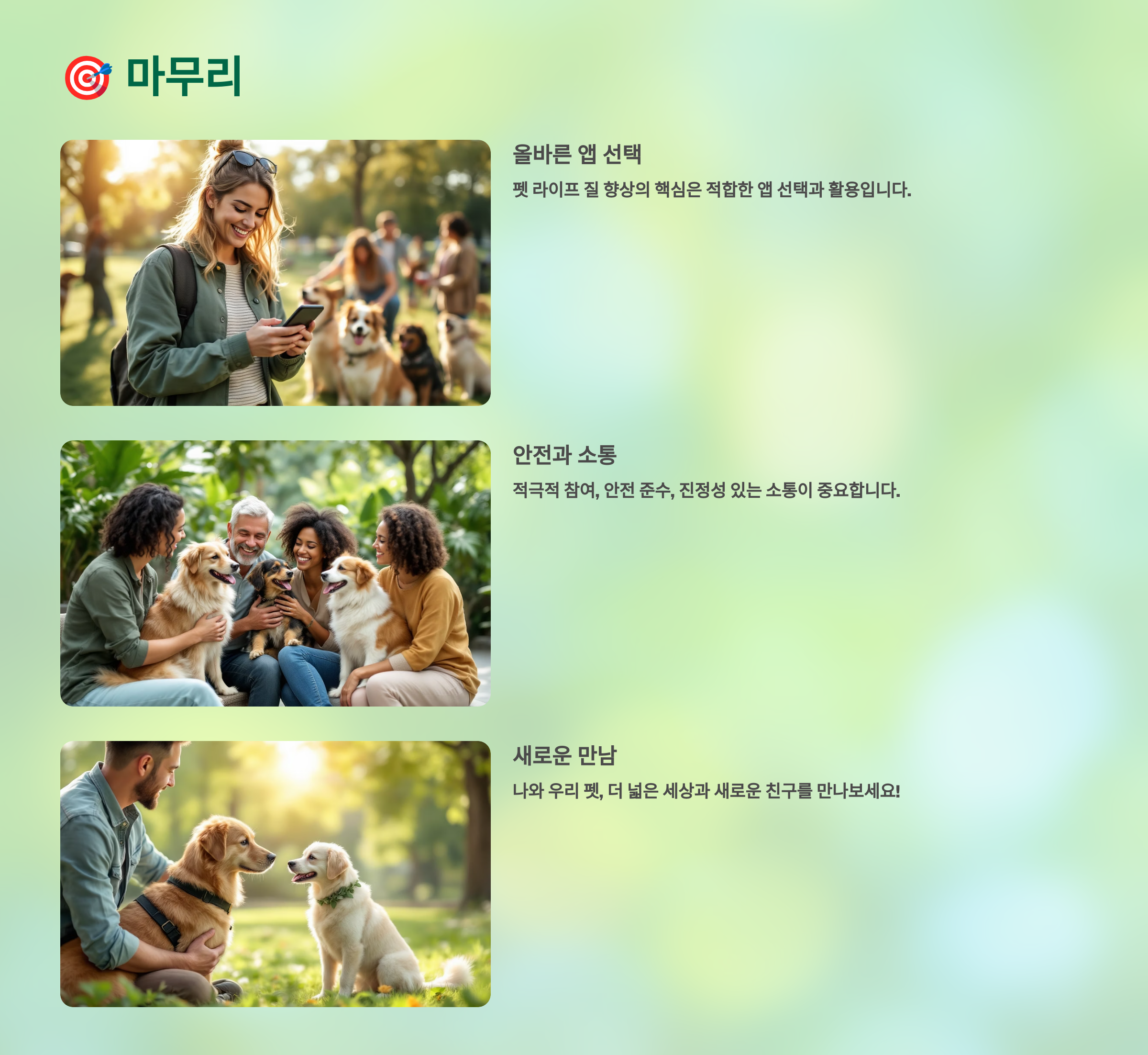 펫 소셜 앱을 통한 반려동물 친구 만들기는 2025년 현재 반려동물 문화의 중요한 부분이 되었어요. 올바른 준비와 신중한 접근을 통해서 우리 반려동물에게 평생 친구를 만들어줄 수 있답니다. 가장 중요한 것은 안전을 최우선으로 하면서도 열린 마음으로 새로운 인연들을 받아들이는 거예요. 단순히 앱을 다운로드하고 프로필을 만드는 것을 넘어서, 우리 반려동물의 성격과 니즈를 정확히 파악하고 그에 맞는 전략을 세우는 것이 성공의 열쇠랍니다.