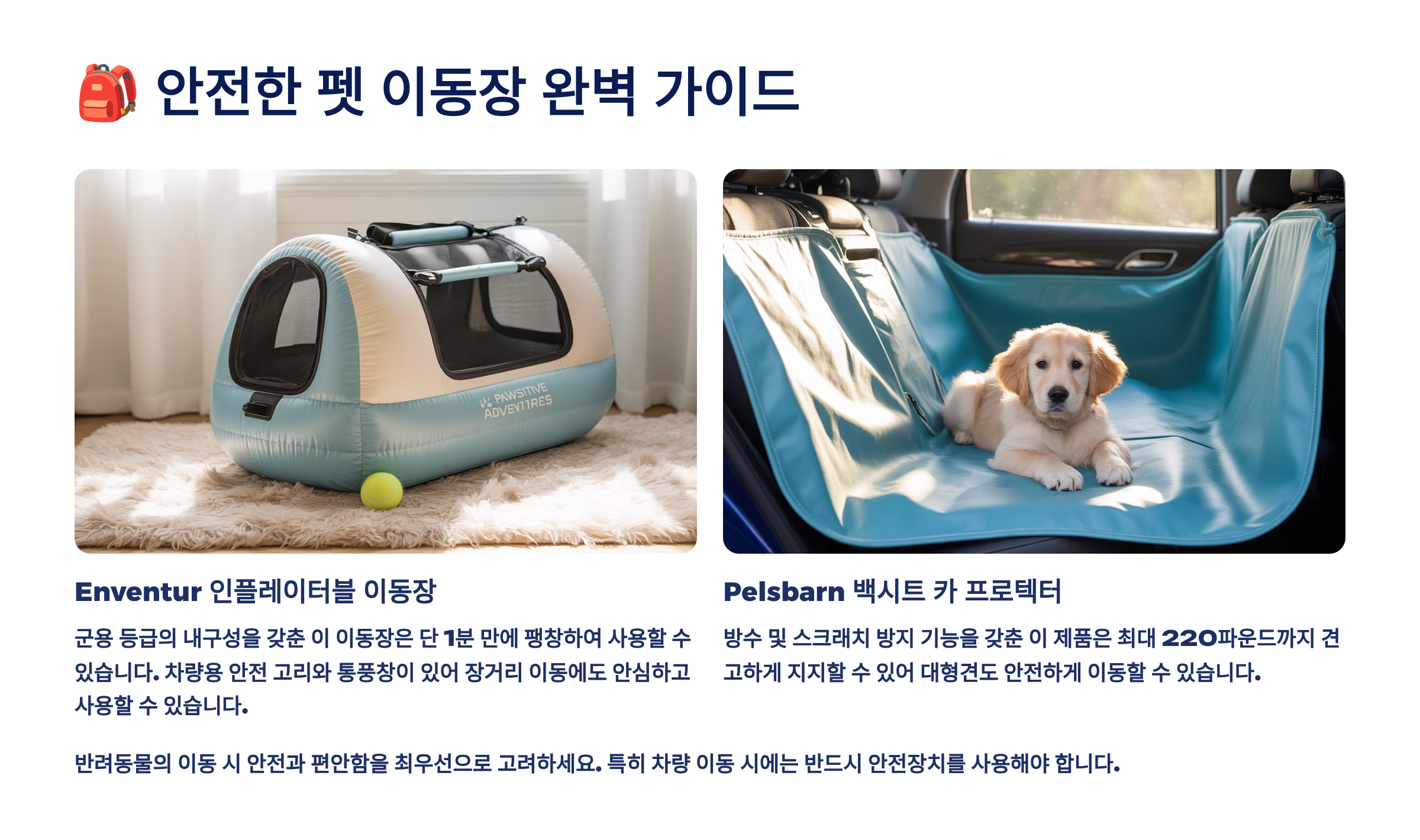 펫 이동장은 동물병원 방문, 여행, 이사 등 다양한 상황에서 필수적인 용품이에요. 안전성과 편안함을 모두 갖춘 이동장을 선택하는 것은 반려동물의 스트레스를 줄이고 보호자의 편의성을 높이는 중요한 일이죠. 항공사 규정, 자동차 안전 기준 등을 고려해서 선택해야 해요. 최근에는 다기능 이동장이 인기를 끌고 있어요.