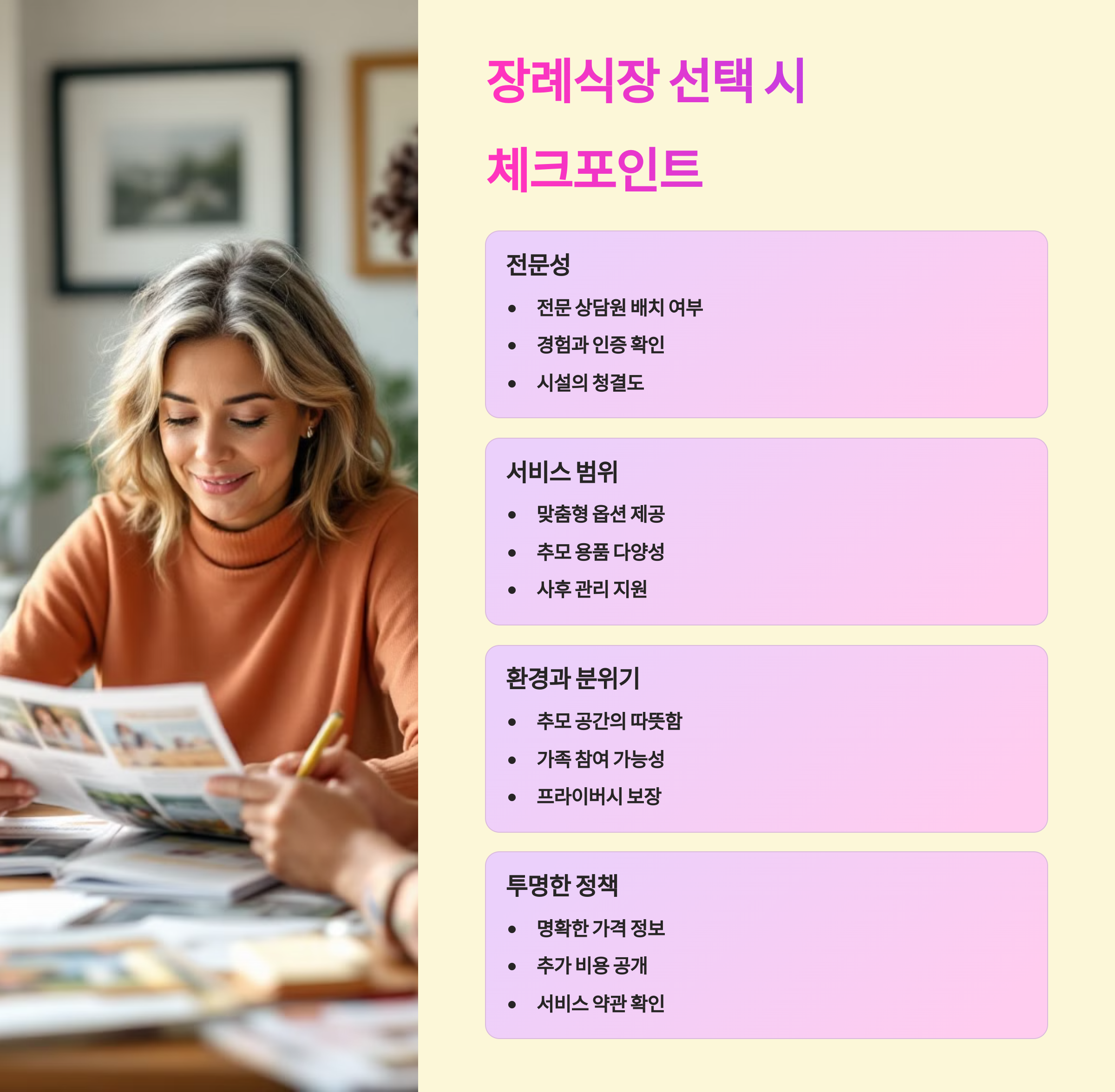 다음은 💡 장례식장 선택 시 체크포인트를 알려줄게요. 신뢰할 수 있는 곳을 고르는 게 정말 중요하거든요!