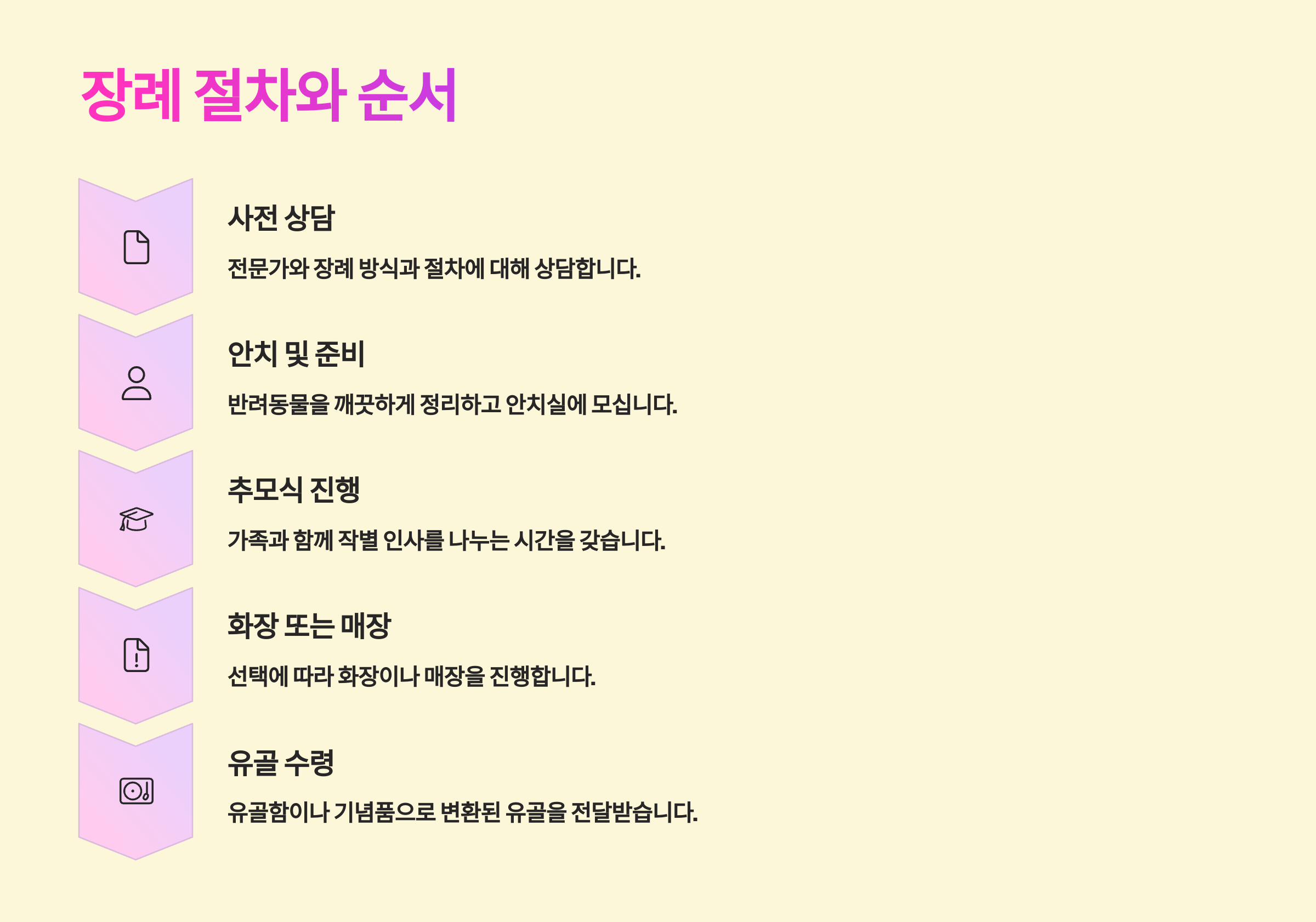 🌿 반려동물 장례는 사람과 마찬가지로 절차에 따라 정중하게 진행돼요. 막연하게 어렵게 느껴질 수도 있지만, 실제로는 친절한 안내와 함께 따뜻한 분위기 속에서 이뤄진답니다.