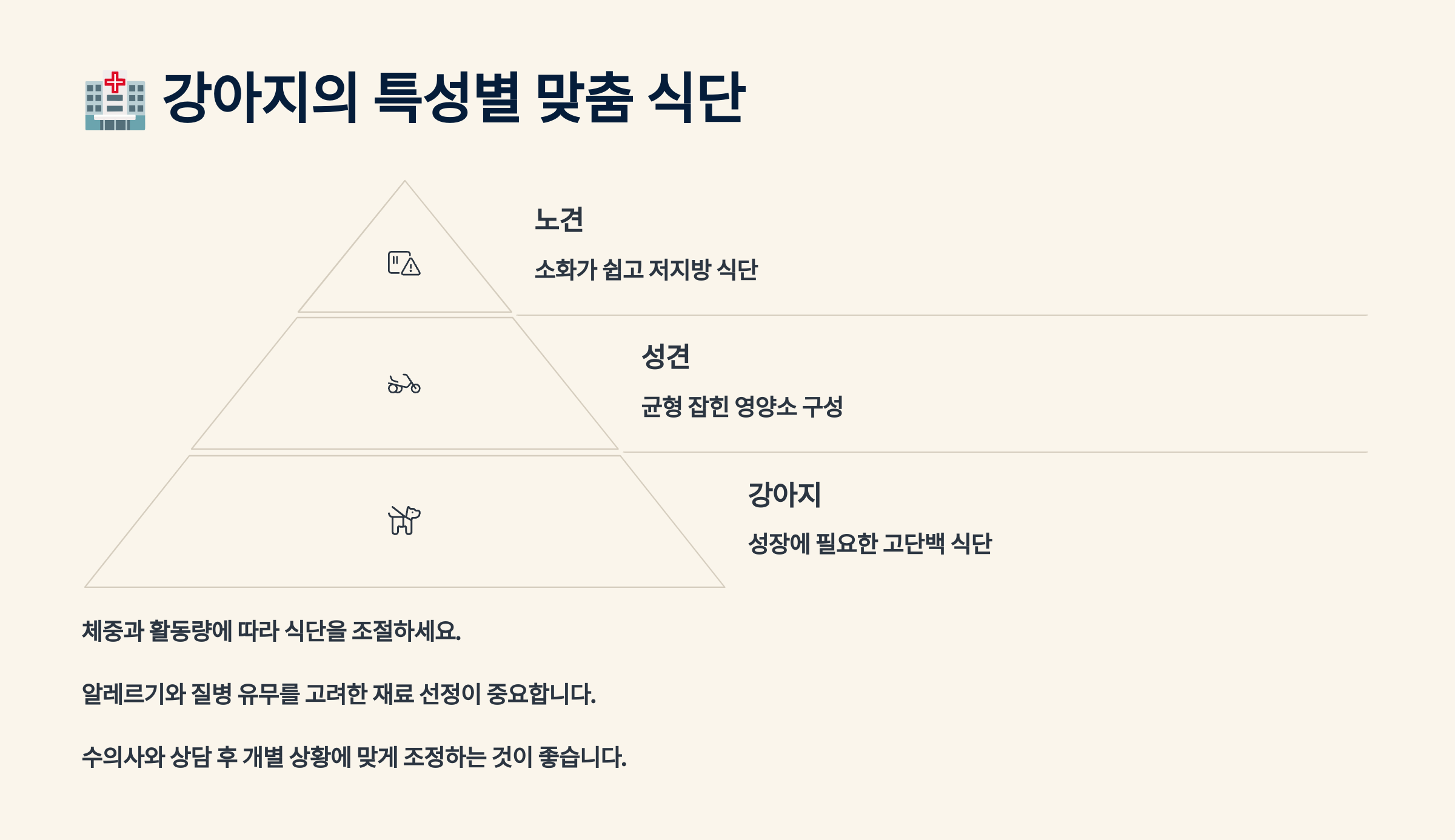 강아지는 품종, 나이, 건강 상태, 활동량에 따라 필요한 영양소와 식단 구성이 달라요. 모든 강아지에게 똑같은 수제식을 주면 오히려 과잉 섭취나 부족 현상이 생길 수 있어요. 반려견의 특성에 맞는 맞춤형 식단을 구성하는 것이 가장 안전하고 효과적인 급여법이에요. 📌