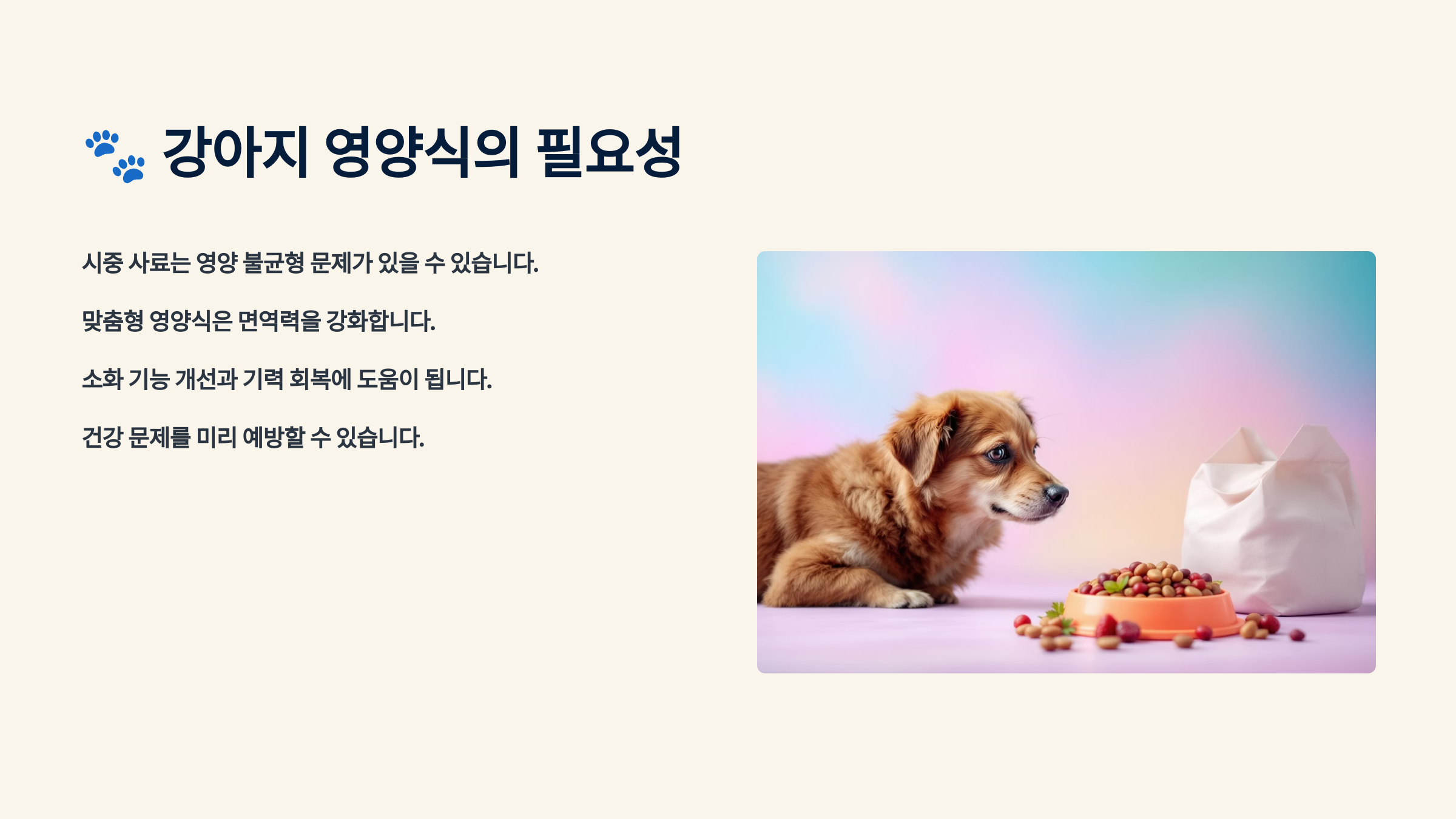이 글 하나면 영양 가득한 건강 레시피부터, 급여 방법, 식단 맞춤 팁까지 한 번에 확인할 수 있어요. 지금부터 반려견과 함께 더 건강하고 행복한 식사 시간을 만들어볼까요? 🍽️