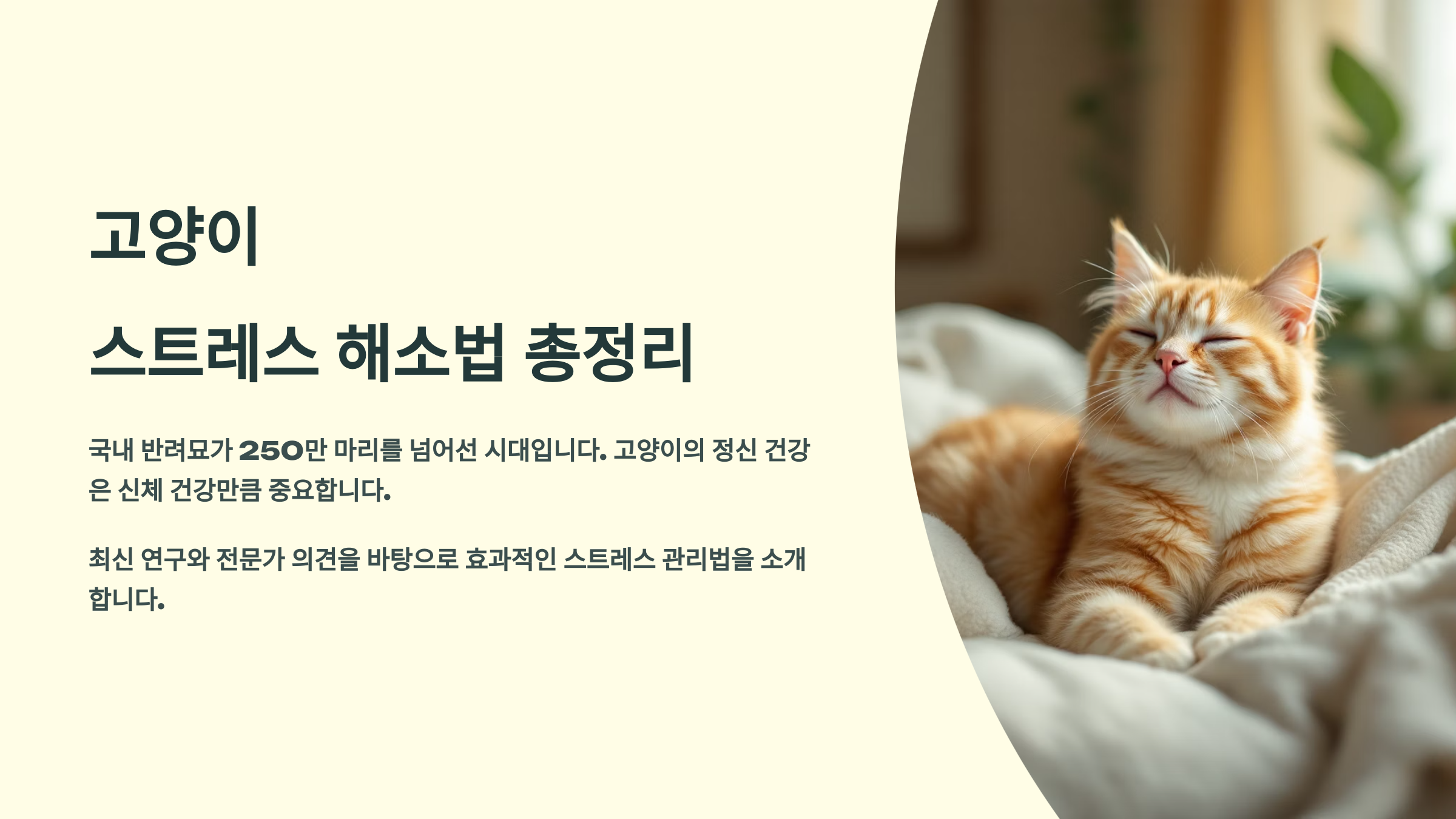 다음은 우리 고양이의 성격에 따라 어떻게 스트레스를 해소해줘야 하는지 🎯 고양이 성향별 스트레스 해소 전략으로 이어집니다!