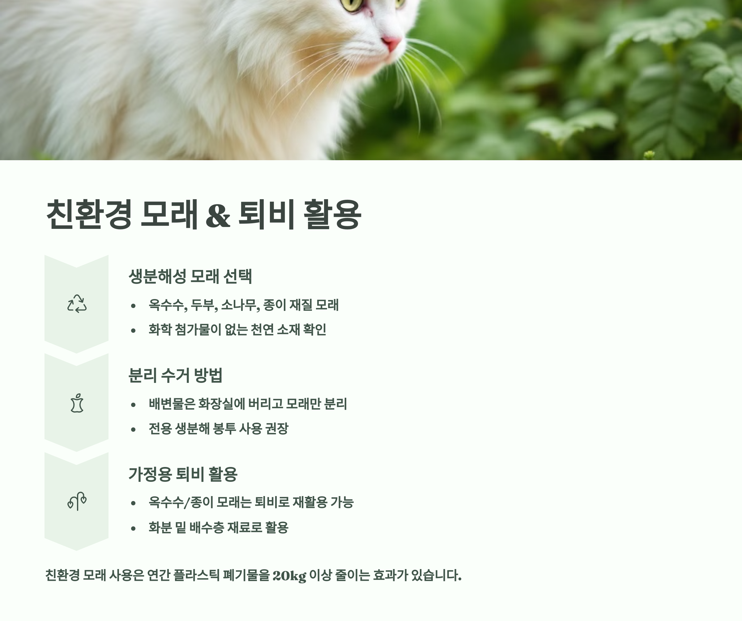 이제 다음은 👉 🌏 친환경 모래 & 퇴비 활용 섹션이에요! 환경도 생각하는 집사님들을 위한 지속가능한 모래 선택법 소개해드릴게요! 🌱🌎
