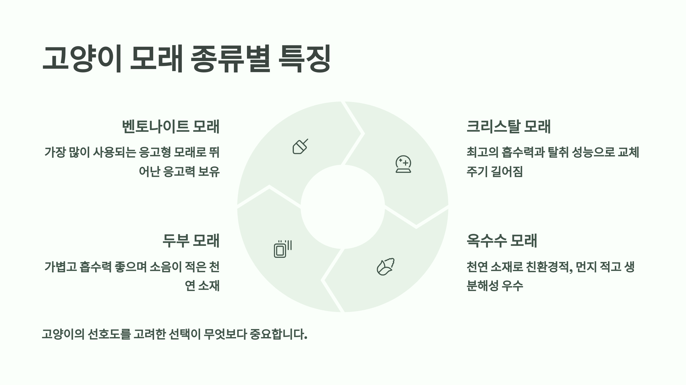고양이가 모래를 마음에 들어 하지 않으면 화장실을 안 쓰거나, 냄새가 심하면 집안 분위기까지 망가질 수 있어요. 그래서 모래 하나 잘 고르는 게 진짜 중요하답니다!