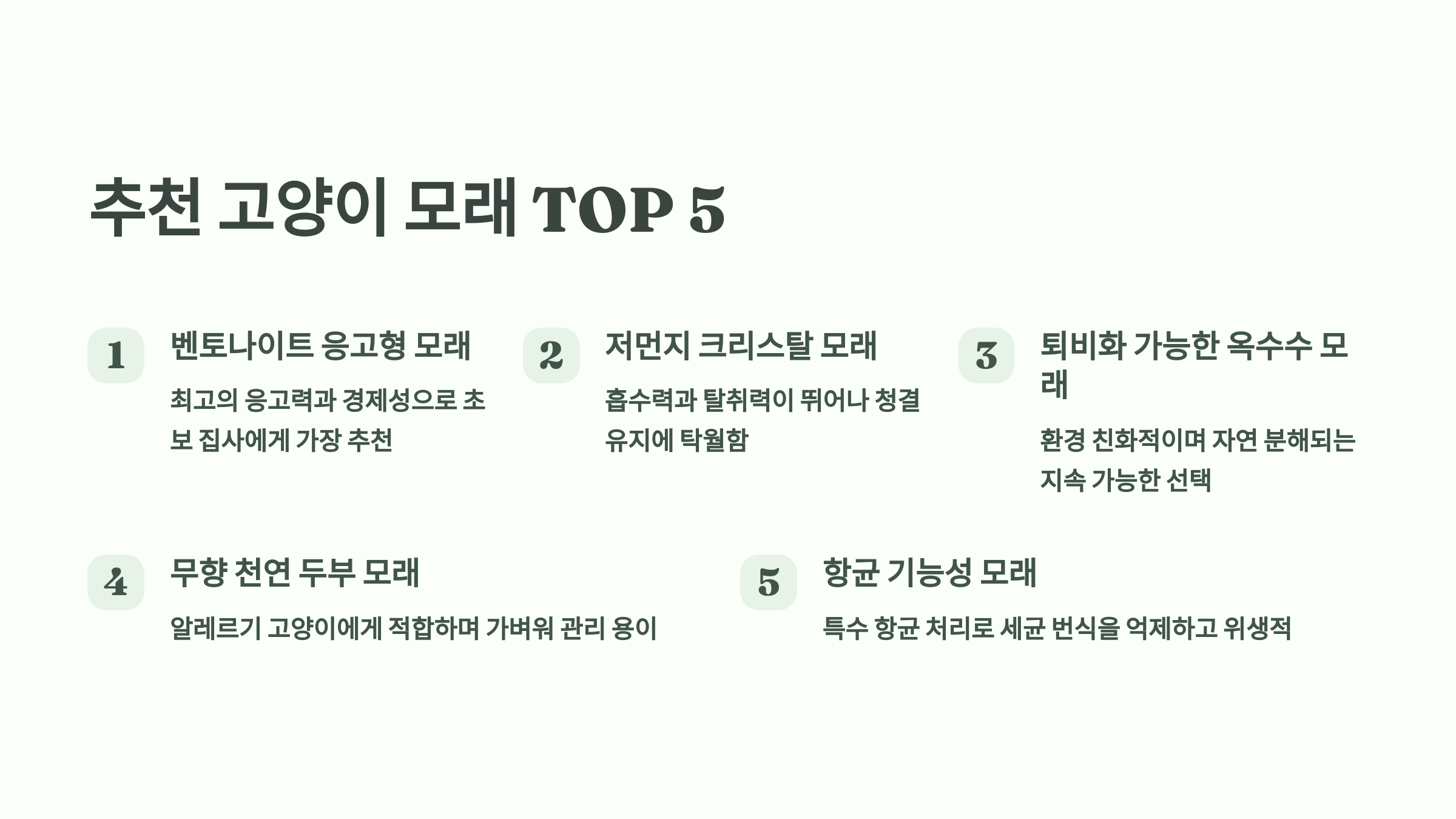 이제 다음은 👉 🪨 추천 고양이 모래 TOP 5 섹션이에요! 리뷰 많은 제품부터, 가성비 갑 인기템까지 콕 집어 추천해드릴게요! 😻🛒