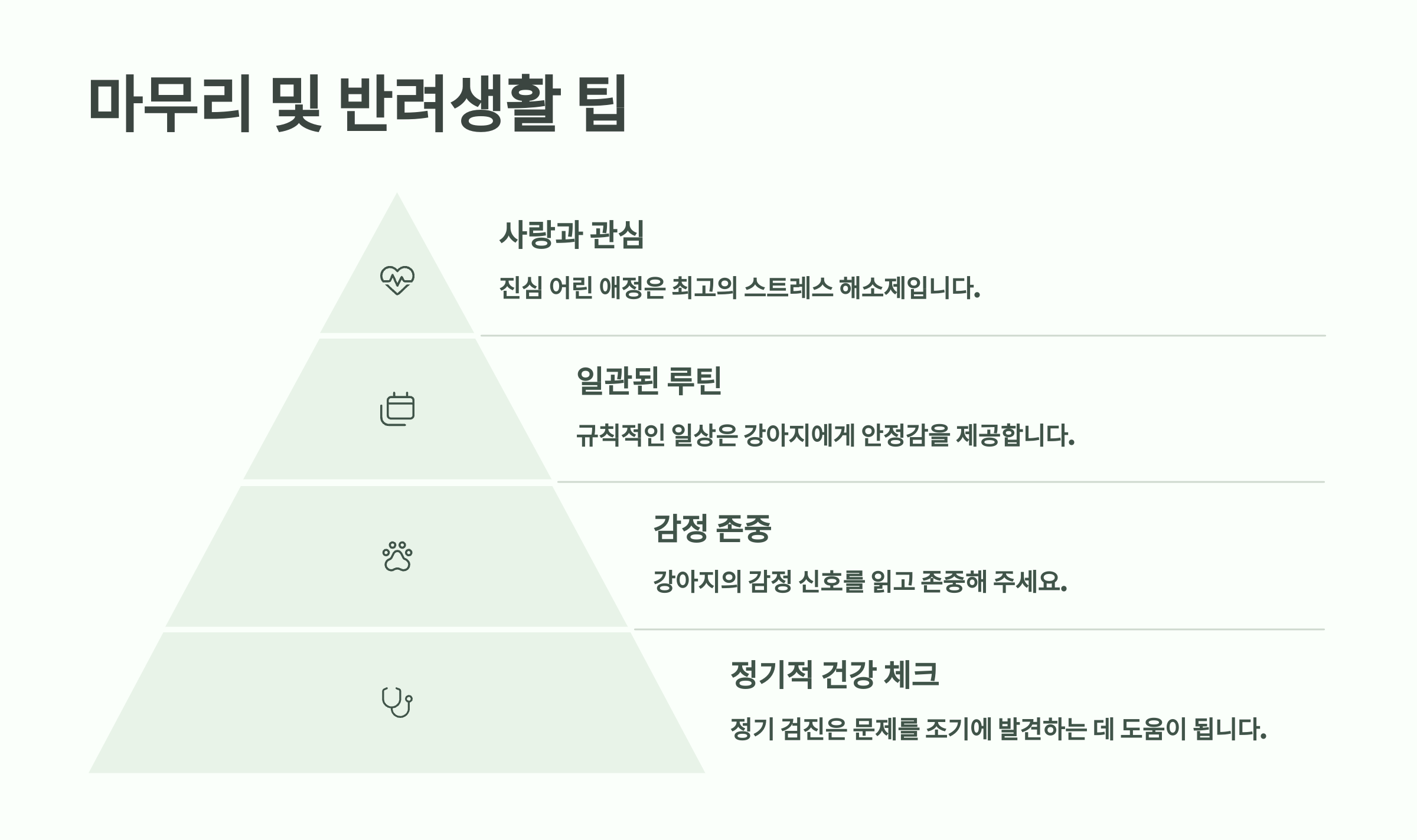 💖 반려견의 마음은 생각보다 복잡하고 예민해요. 그만큼 우리가 주는 사랑과 환경은 절대적인 힘이 된답니다. 오늘 알려준 9가지 방법으로, 우리 강아지 마음속 스트레스는 이제 안녕이에요!