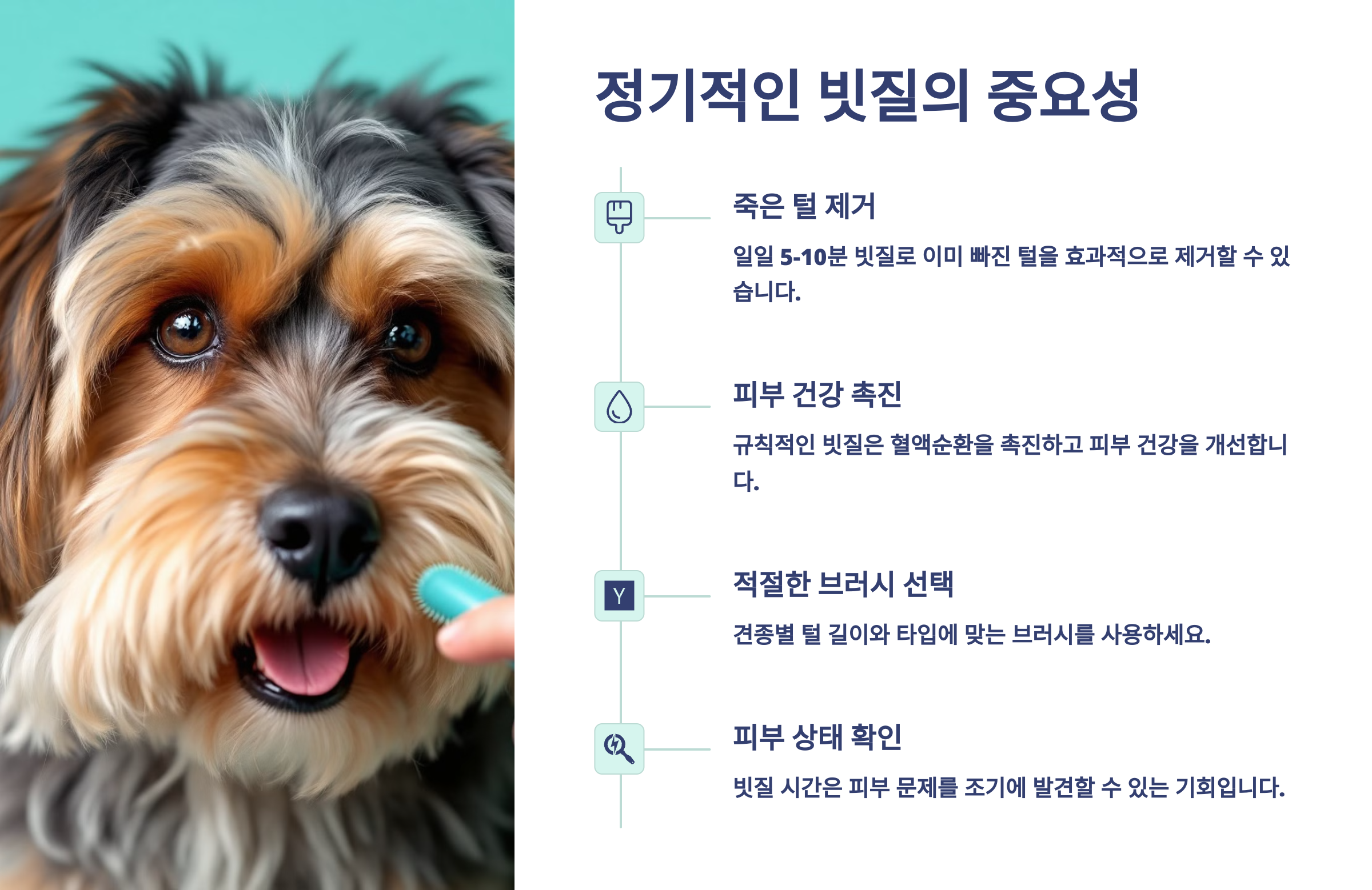 🖐 강아지의 털 빠짐을 가장 직접적으로 줄일 수 있는 방법은 바로 정기적인 빗질이에요. 하루에 1~2번만 해줘도 털 빠짐이 절반으로 줄어들 수 있어요. 털 사이에 숨은 죽은 털을 제거하고, 피부 자극도 줄여주기 때문에 건강에도 도움을 준답니다.