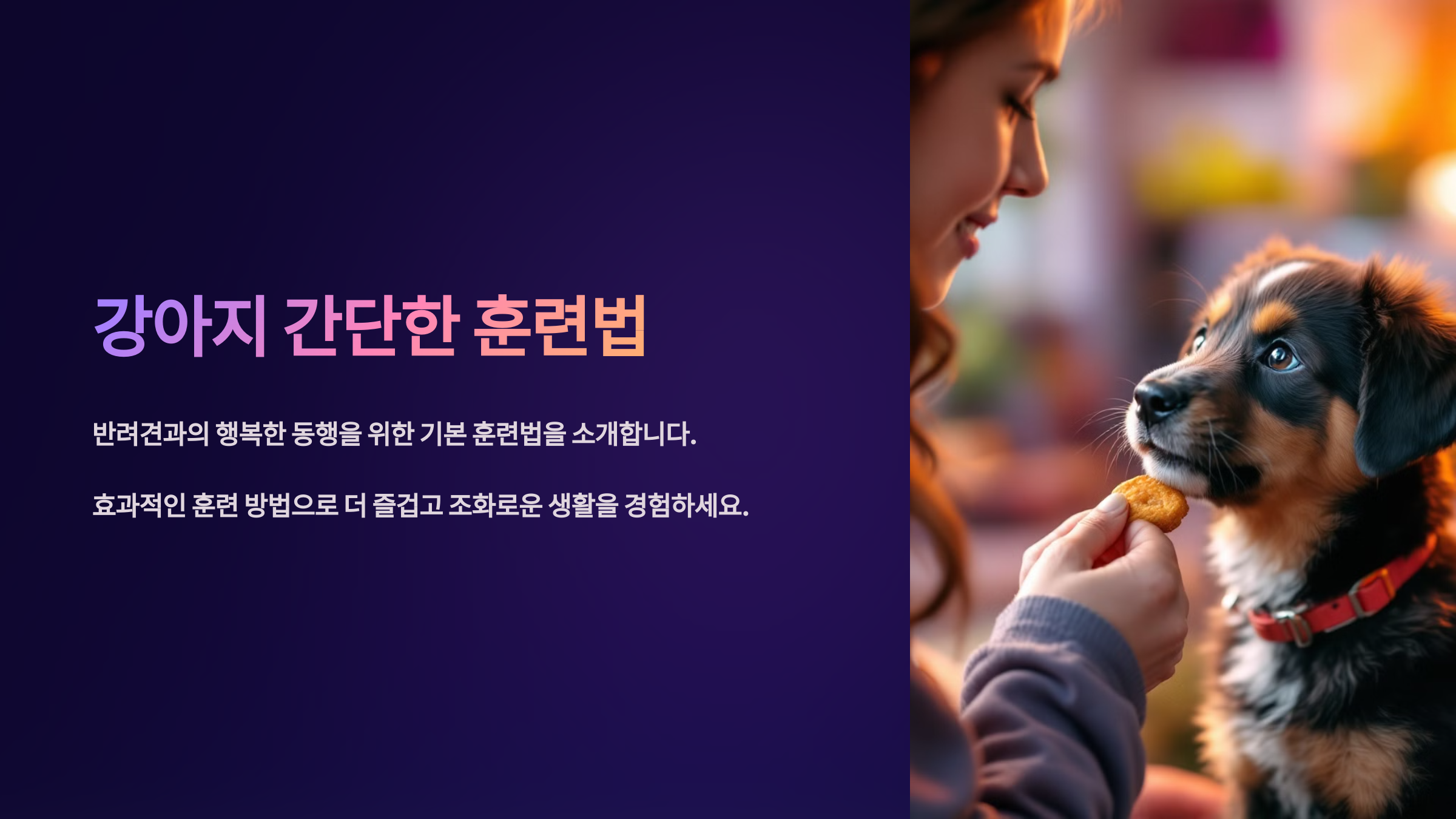 🐕 강아지 훈련은 단순히 말을 잘 듣게 하려는 게 아니에요. 반려견과 보호자 사이의 소통을 돕고, 사회성과 자제력을 길러주는 중요한 과정이에요.