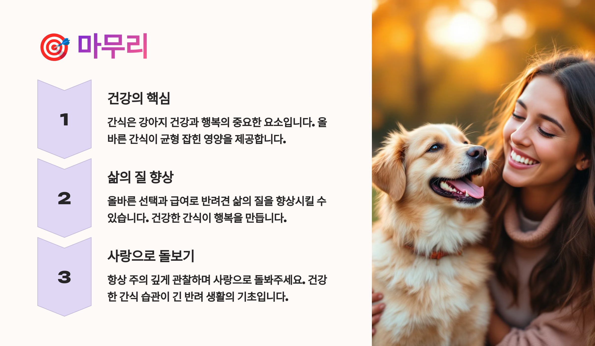 올바른 간식 선택으로 우리 강아지의 건강과 행복을 지켜주세요! 🐶💖