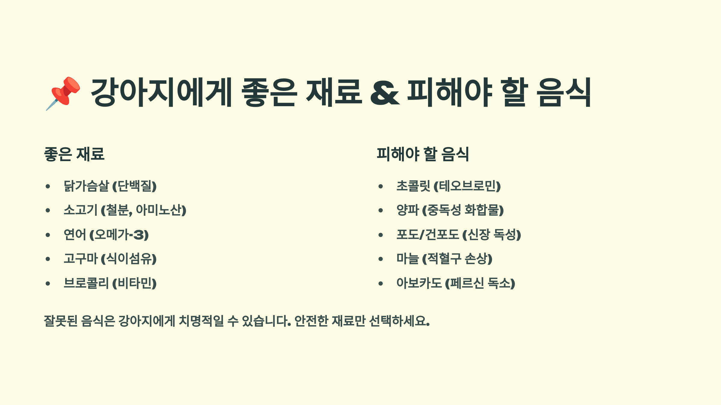 📌 강아지에게 좋은 재료 & 피해야 할 음식