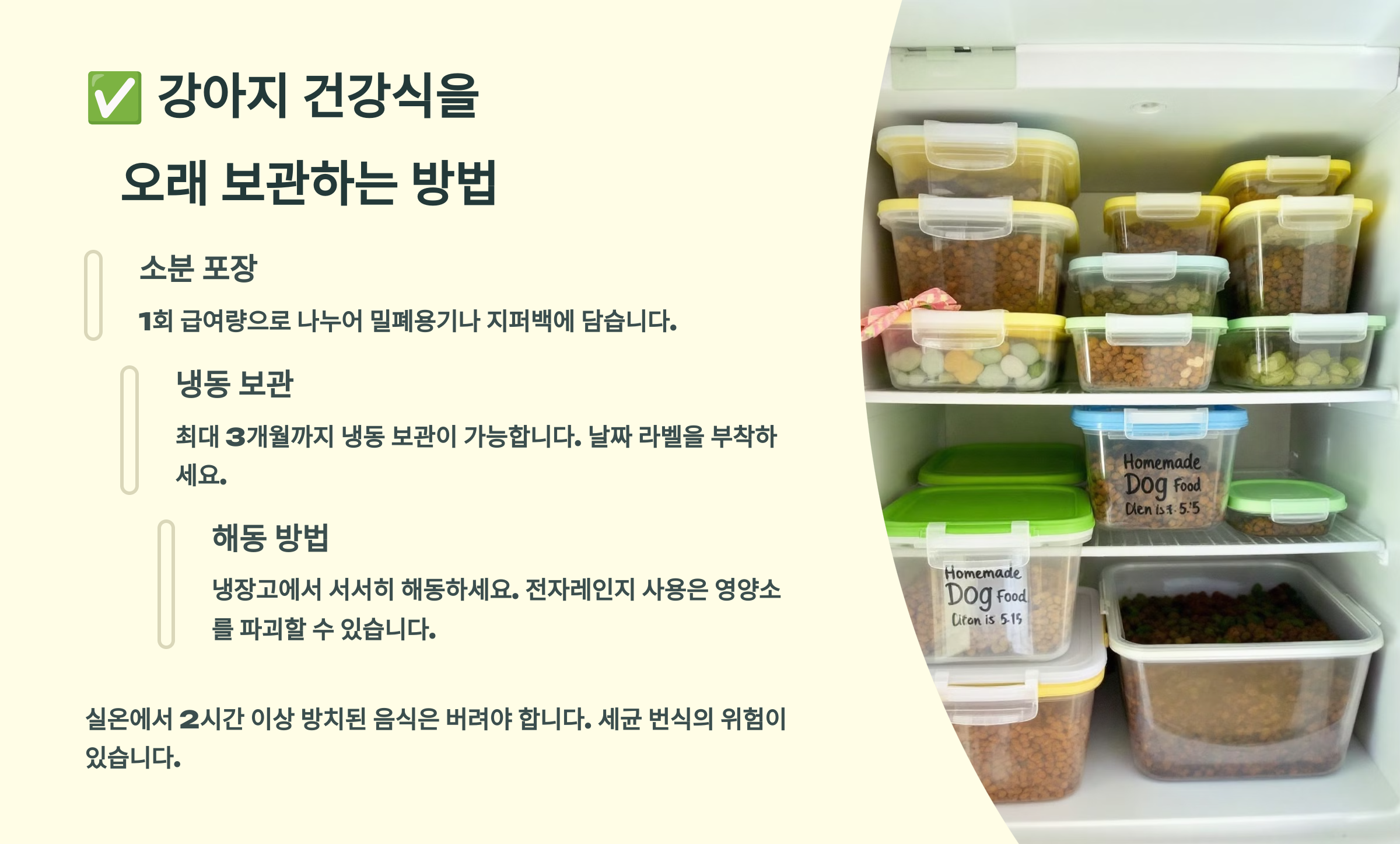 올바른 보관법을 지켜 안전하고 신선한 강아지 건강식을 유지하세요! 🐶❄️