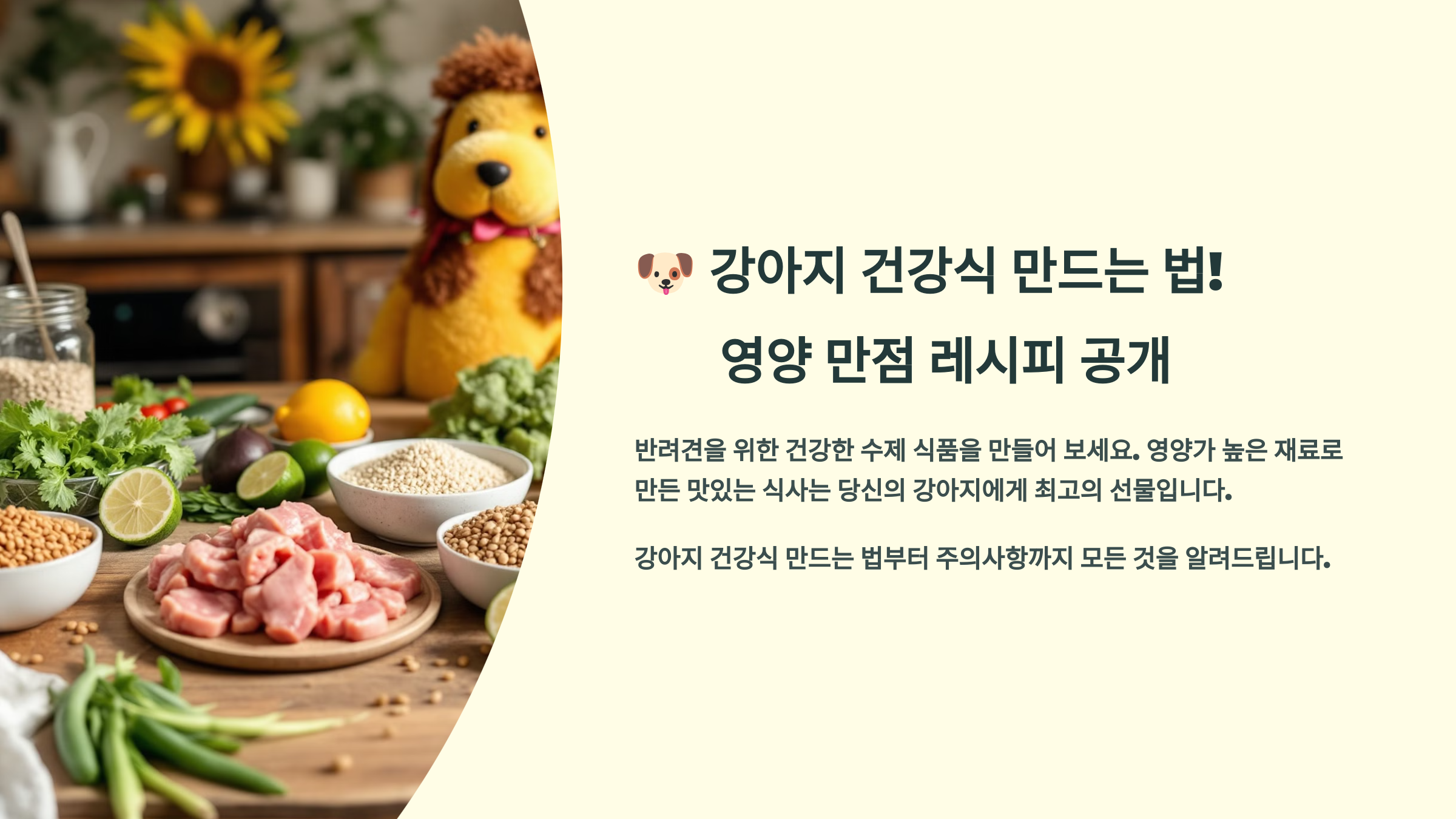 강아지 건강식은 영양 균형을 맞추고, 안전한 재료를 사용하는 것이 중요해요! 🍗🥕