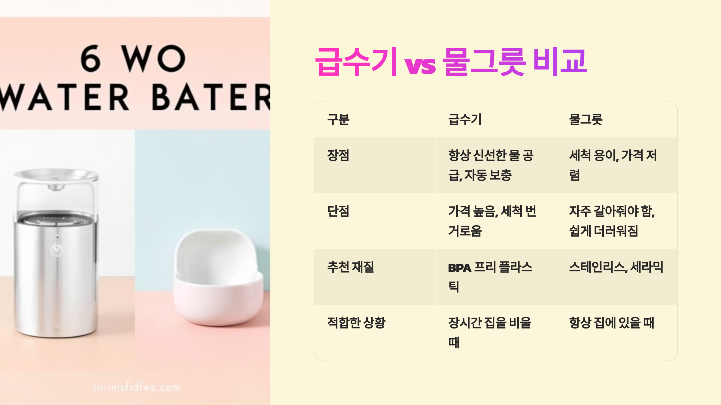 다음 섹션에서는 급수기 vs 물그릇 비교를 알아볼까요? 🛒
