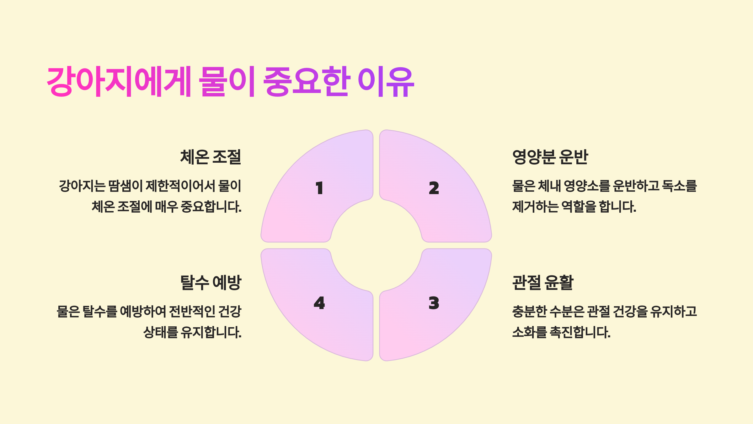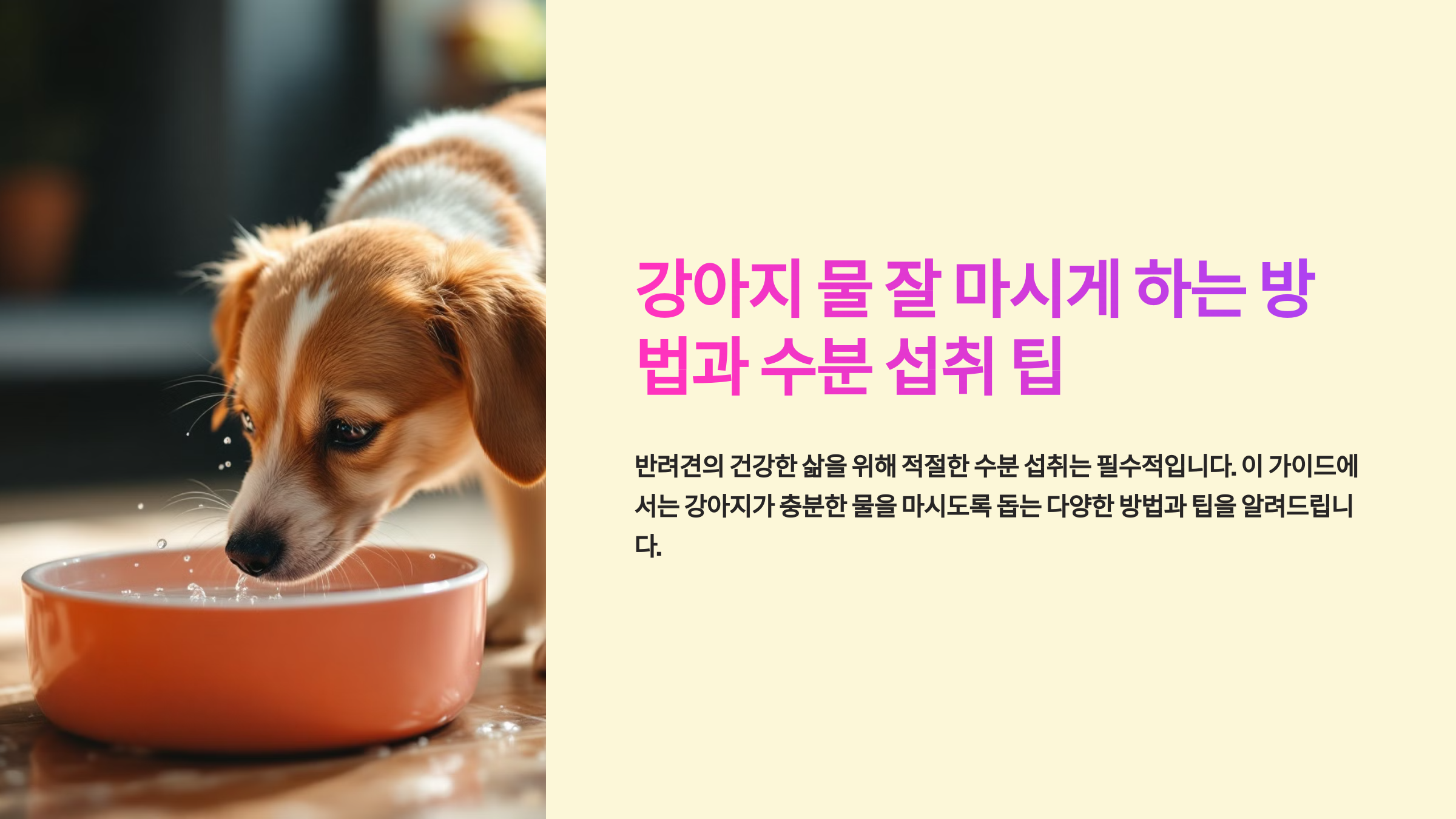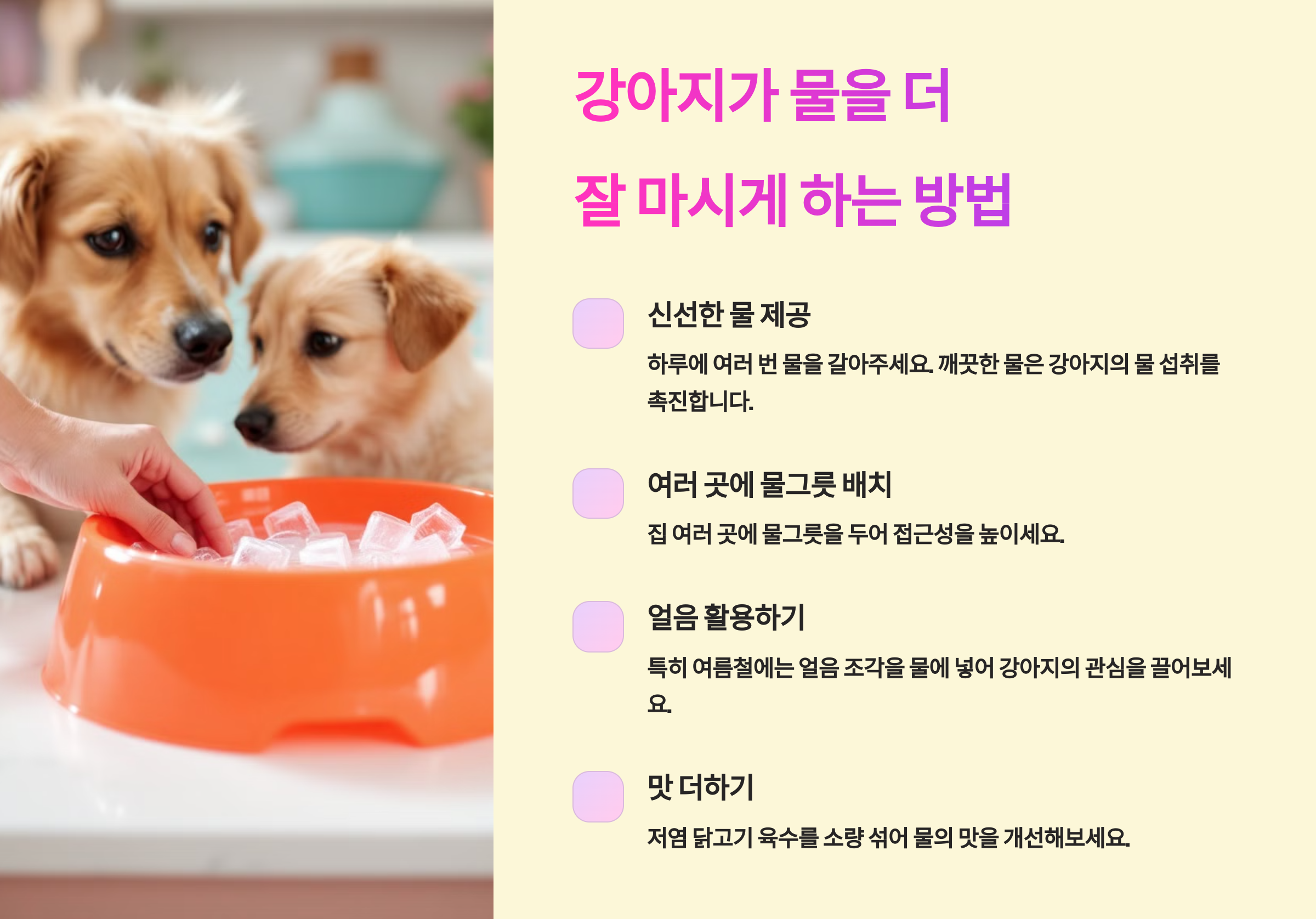 💡 작은 변화만으로도 강아지의 건강을 지킬 수 있어요! 지금부터 강아지가 충분한 물을 마실 수 있도록 도와주세요. 😊