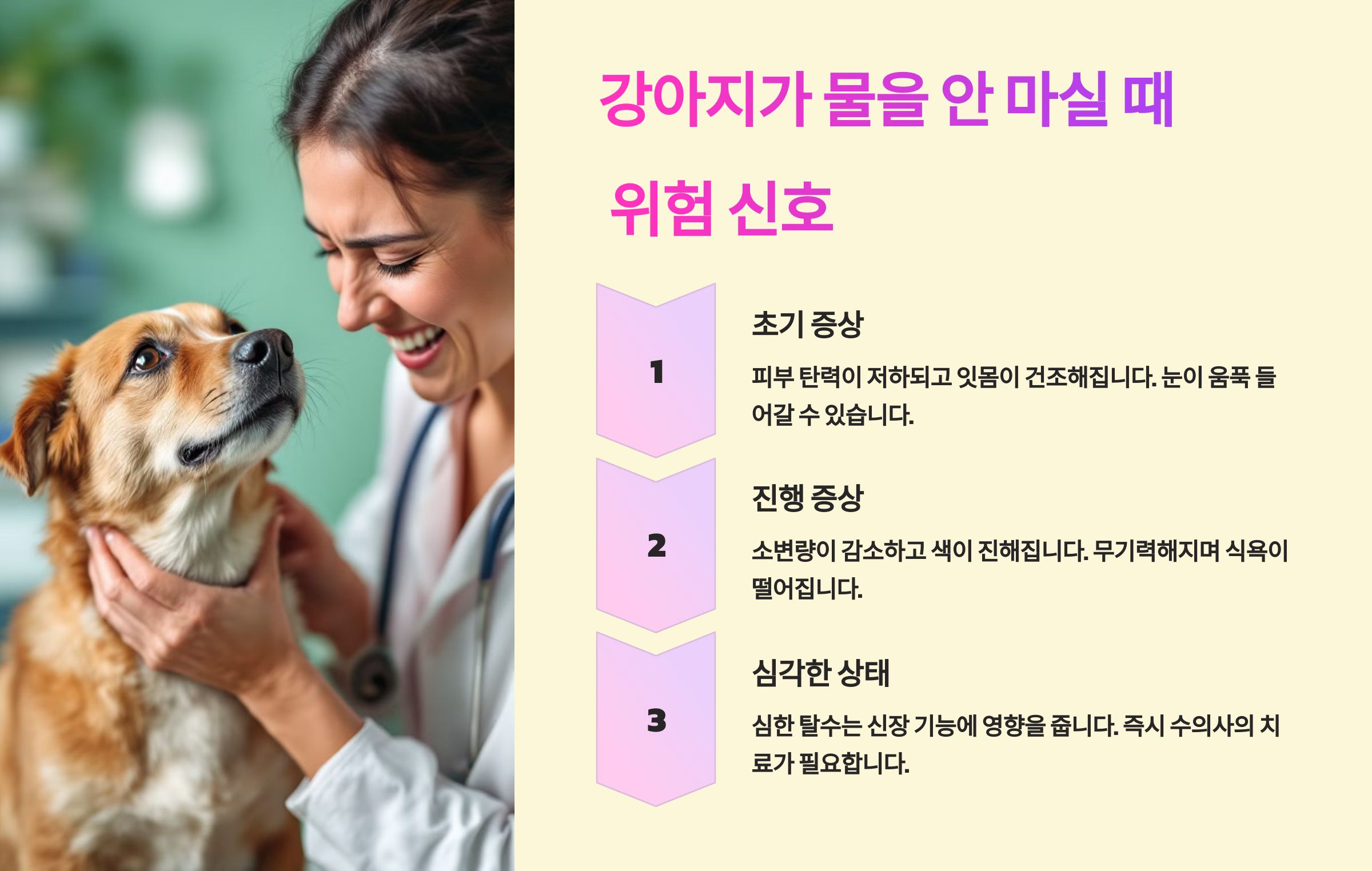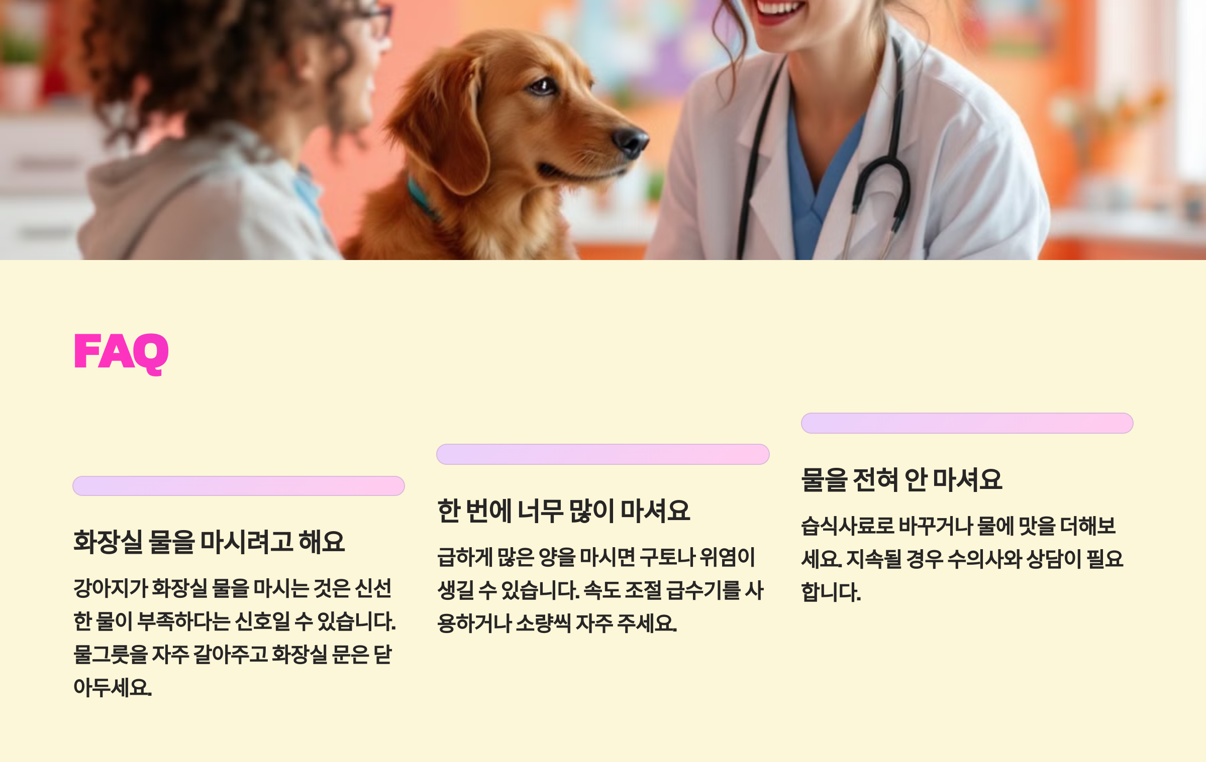 다음 섹션에서는 강아지가 물을 안 마실 때 위험 신호에 대해 알아볼까요? 🚨