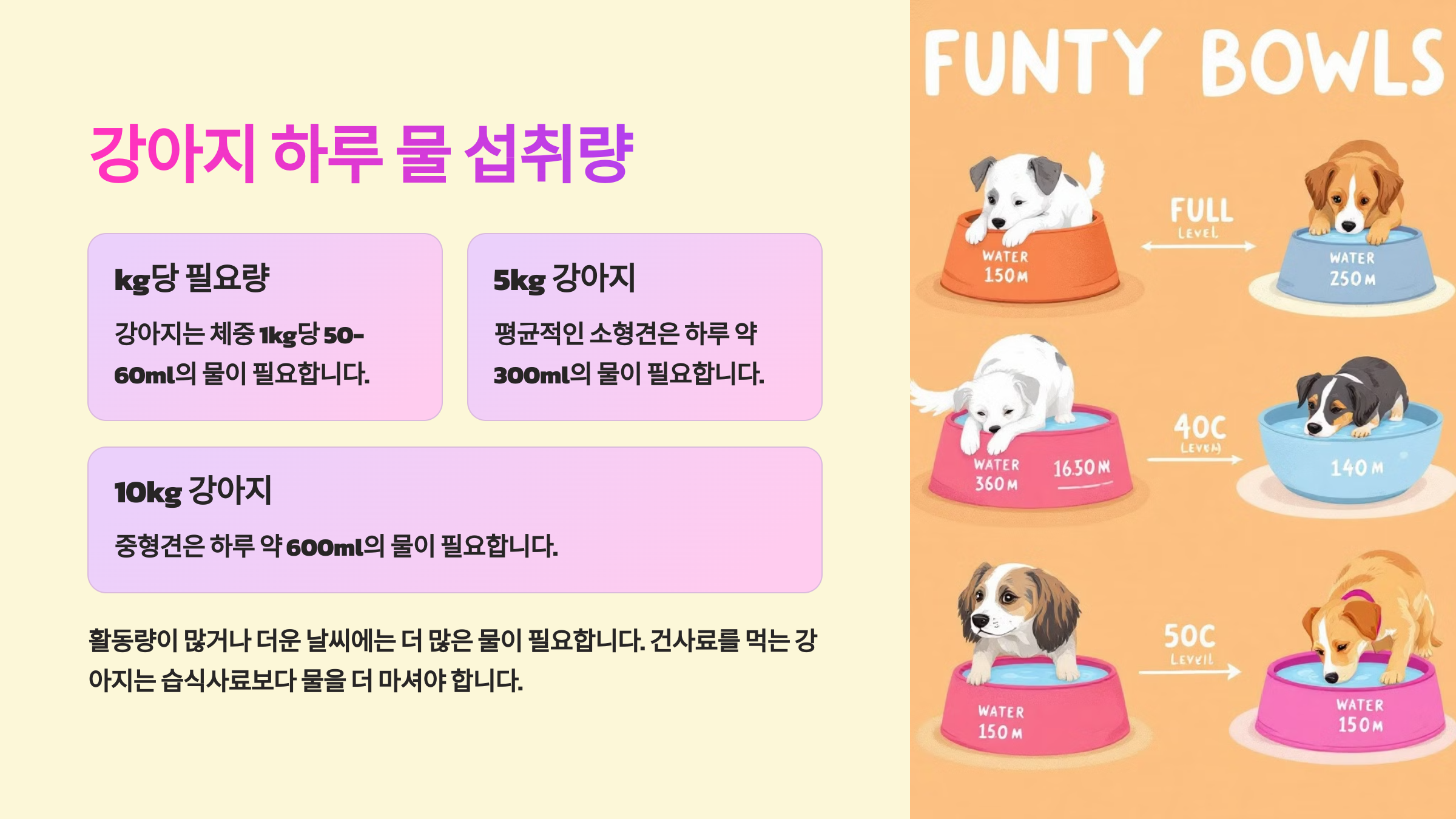 📢 작은 변화만으로도 강아지의 물 섭취량을 늘릴 수 있어요! 💦