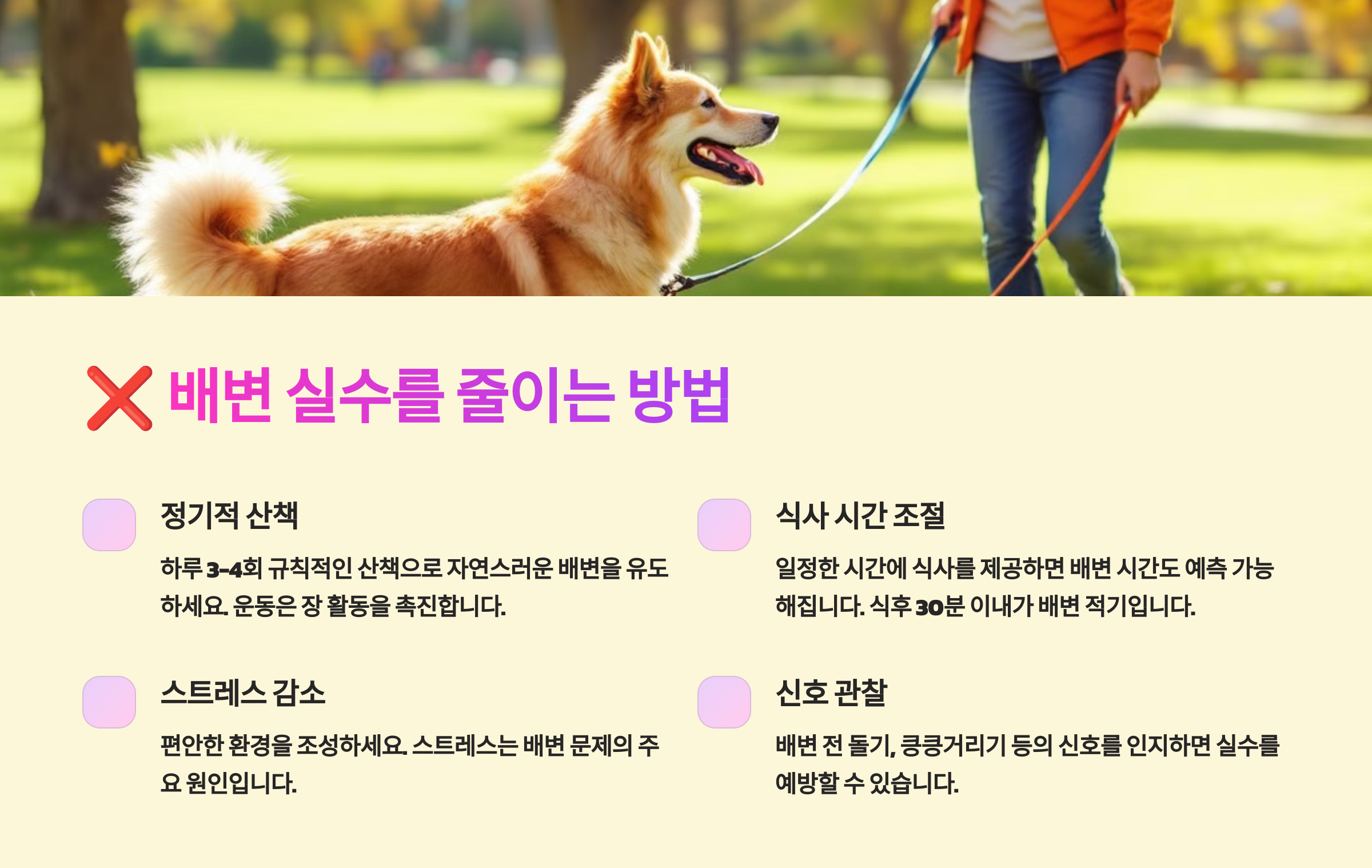 🔜 다음 섹션에서는 ❌ 배변 실수를 줄이는 방법에 대해 알아볼게요!