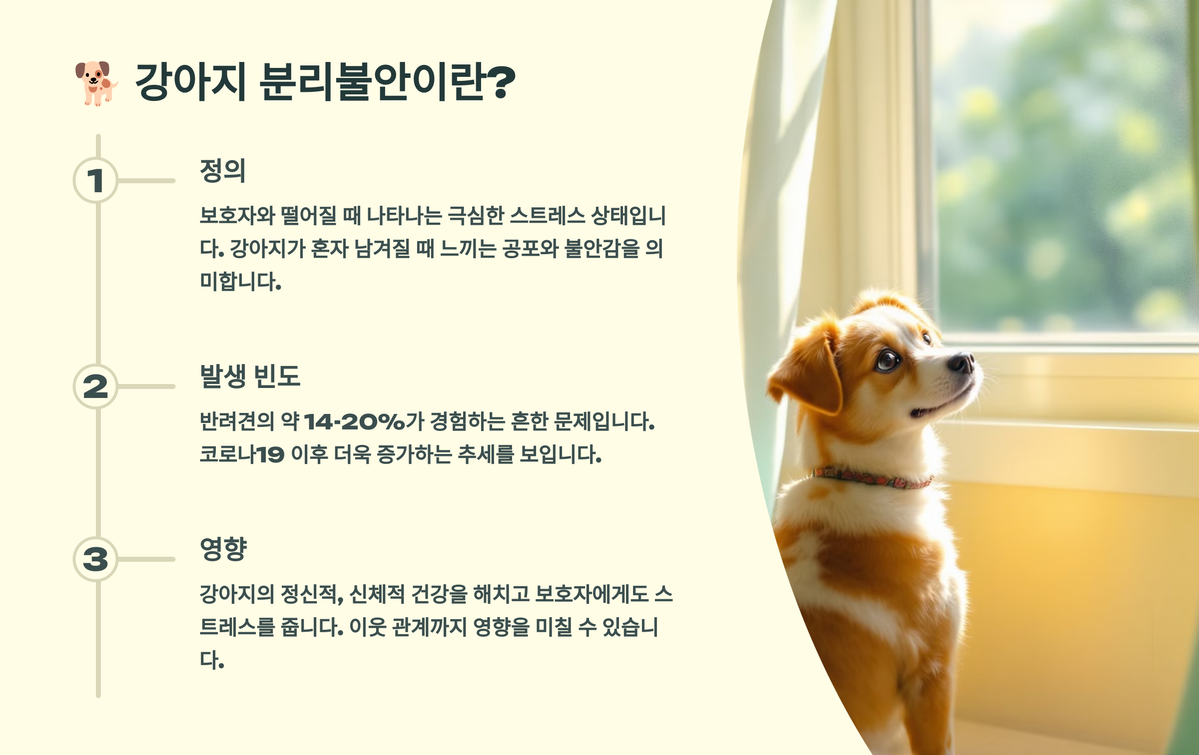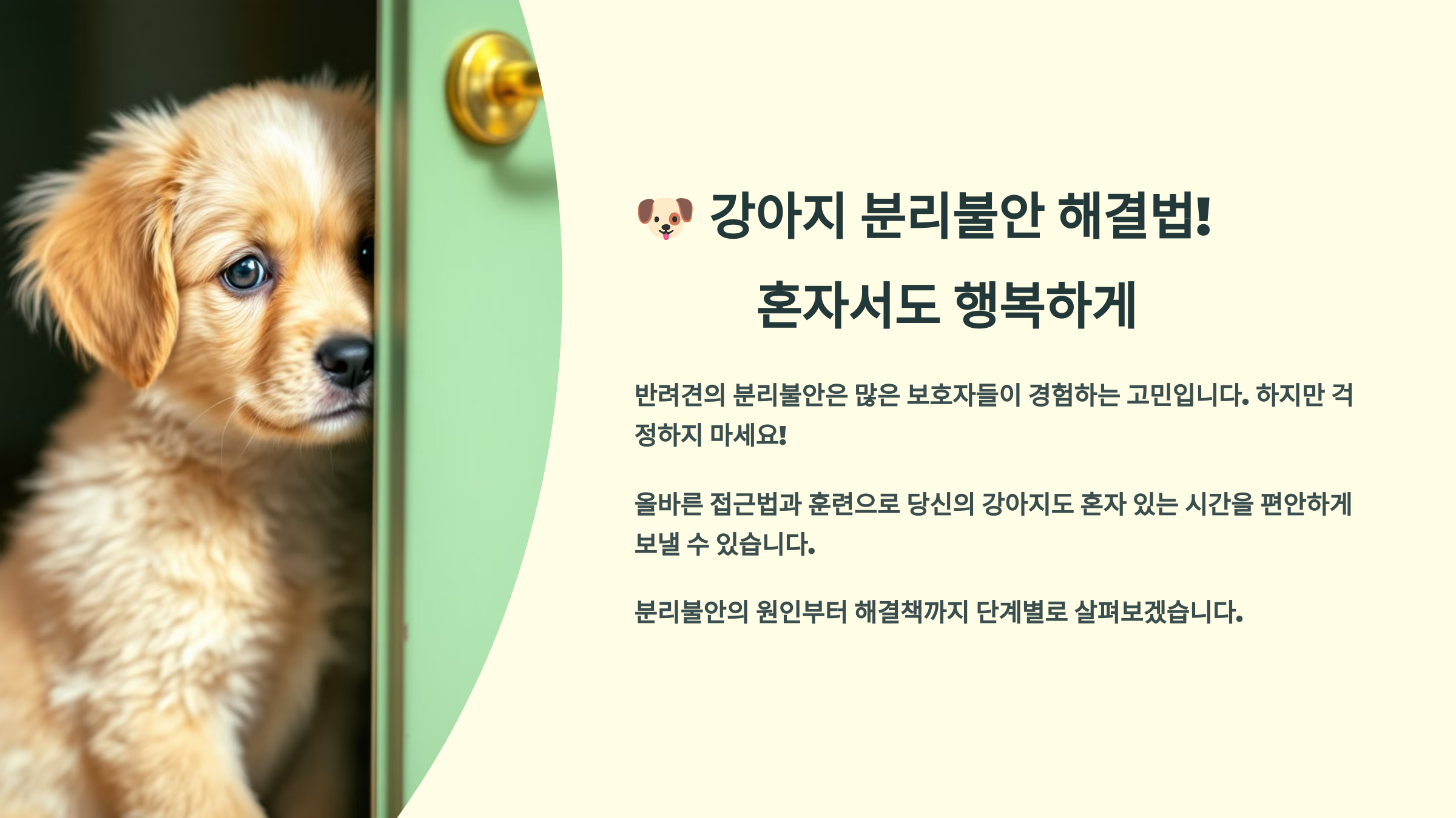 💡 오늘은 강아지의 분리불안 원인과 해결법을 알아보고, 실생활에서 적용할 수 있는 훈련법을 소개할게요. 보호자도 안심하고 외출할 수 있도록 도와줄게요! 🏡