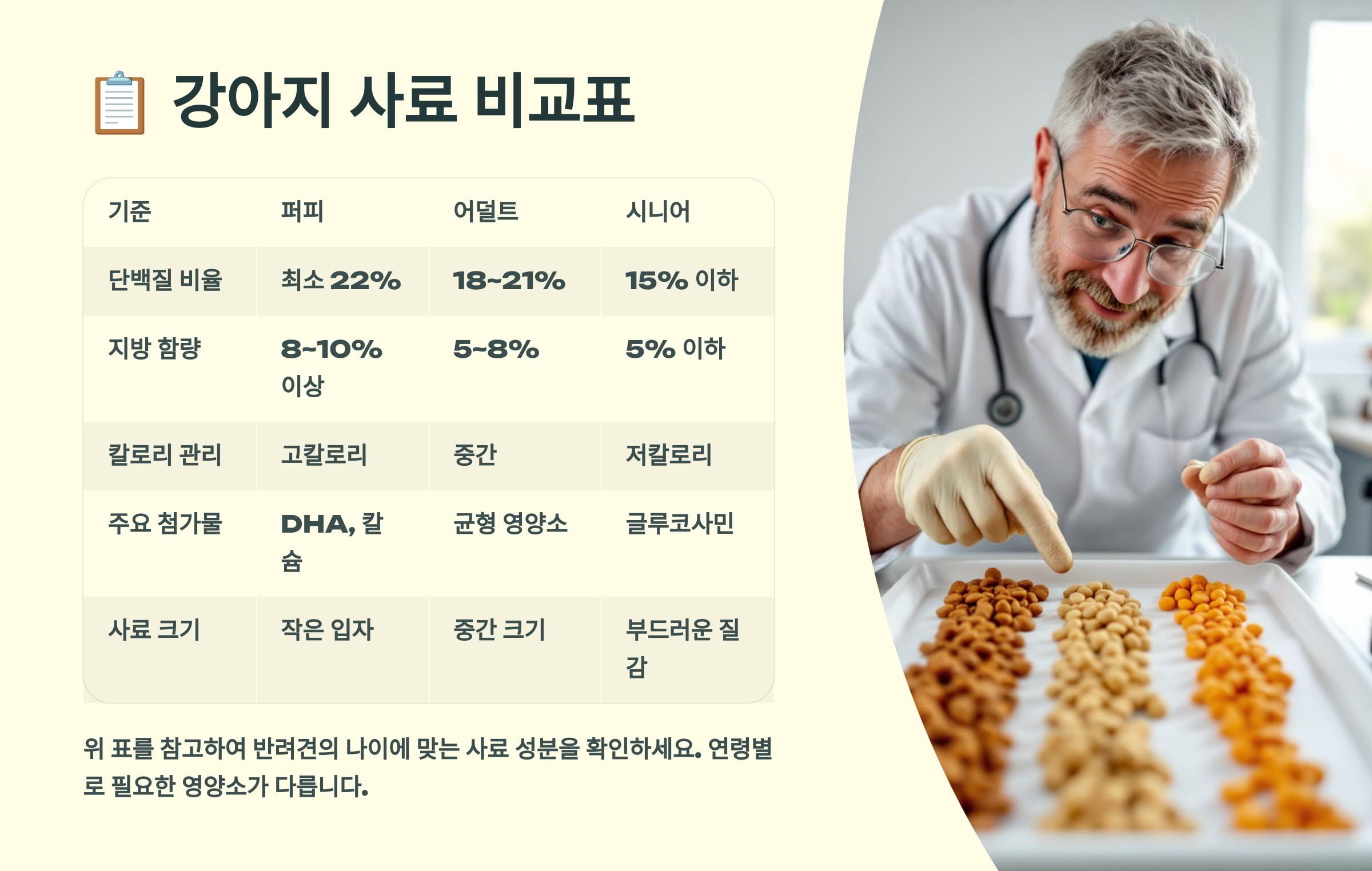 🐾 위 표를 참고해서 강아지에게 가장 적합한 사료를 선택해 보세요! 😊