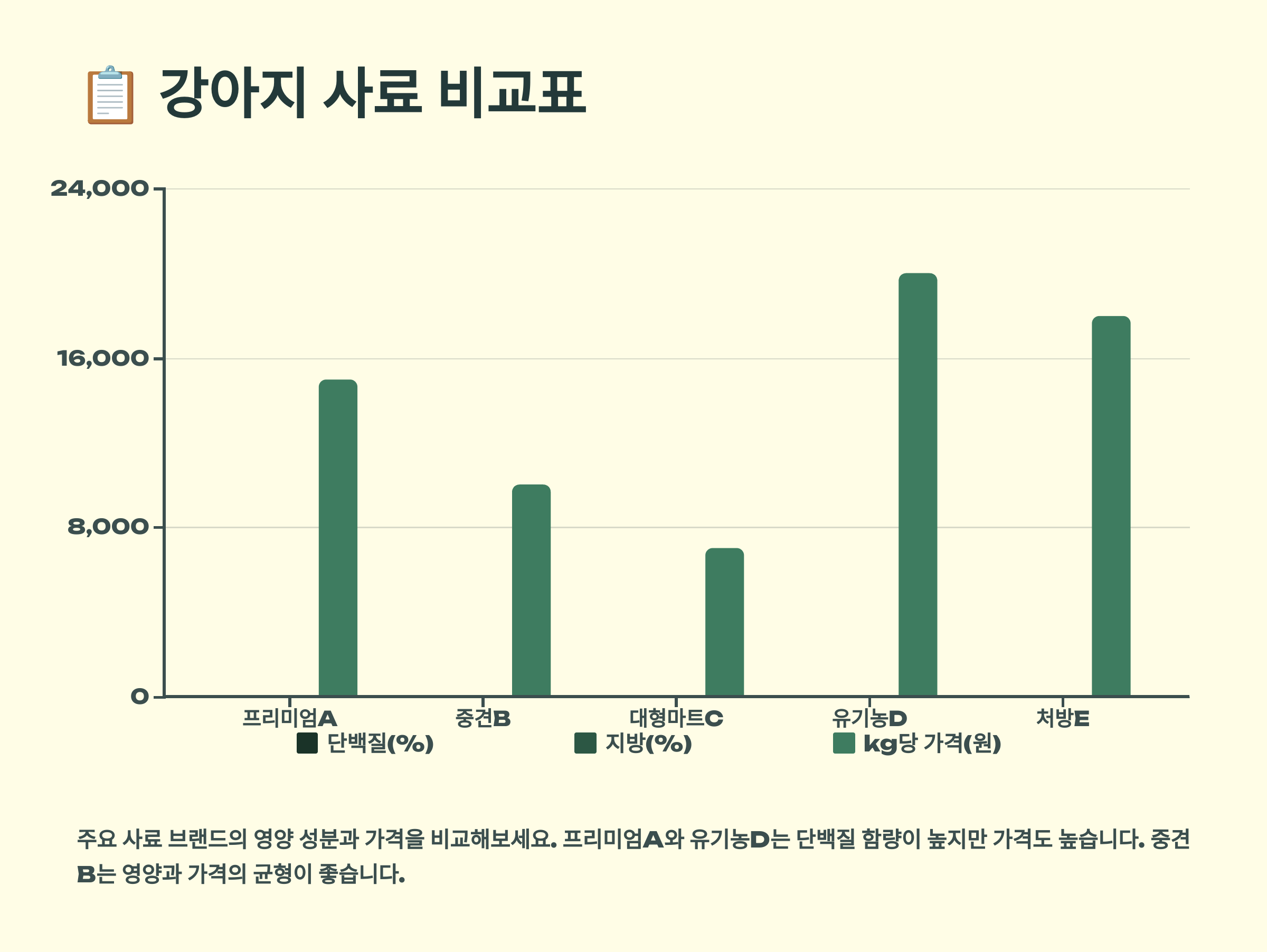 🐕 강아지 사료를 고를 때 한눈에 비교할 수 있으면 더욱 좋겠죠? 아래 표에서는 강아지 사료의 주요 성분, 특징, 가격대를 정리했어요!