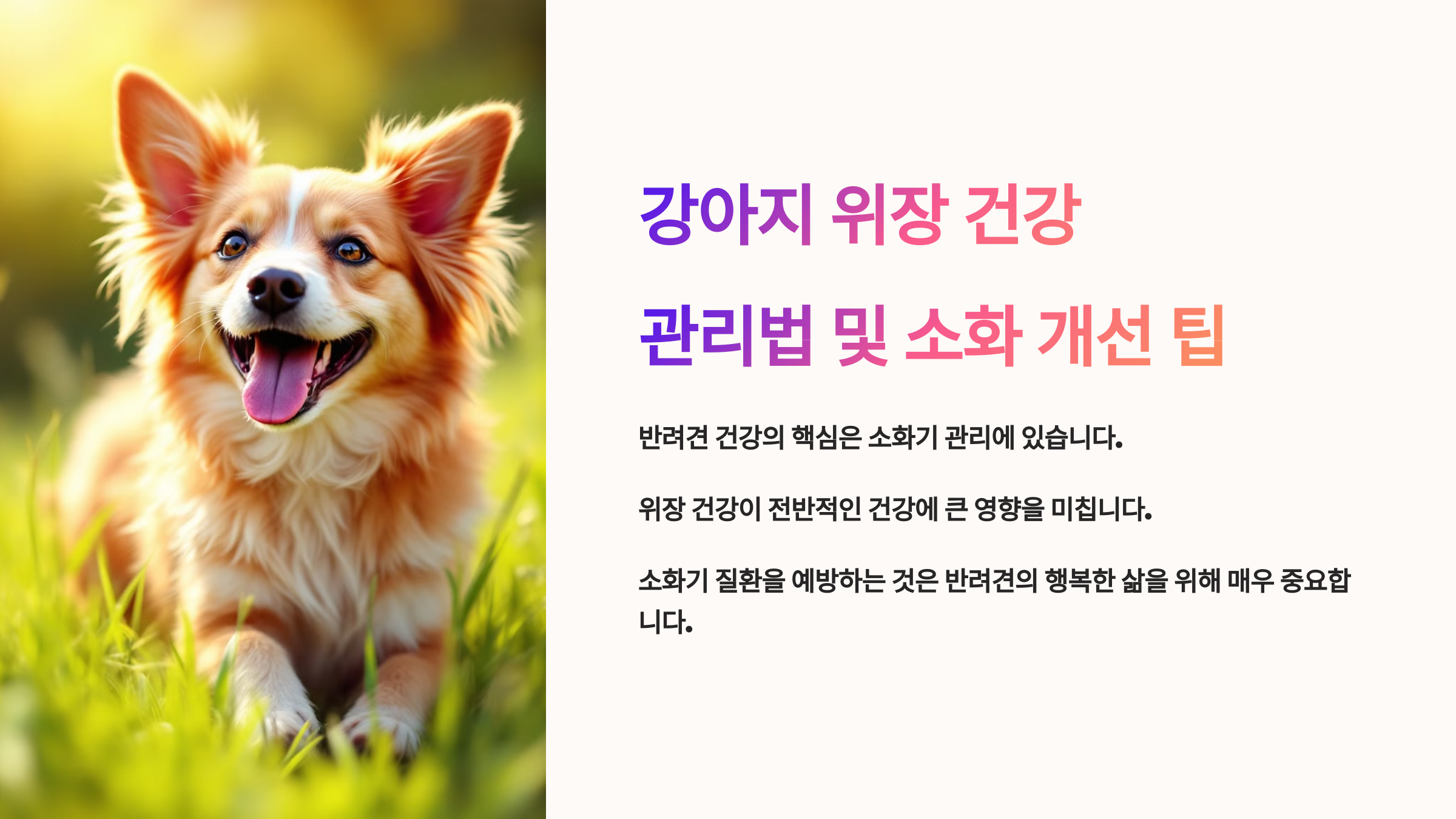 💡 작은 변화만으로도 강아지의 위장 건강을 지킬 수 있어요! 지금부터 올바른 관리 습관을 실천해 보세요. 😊