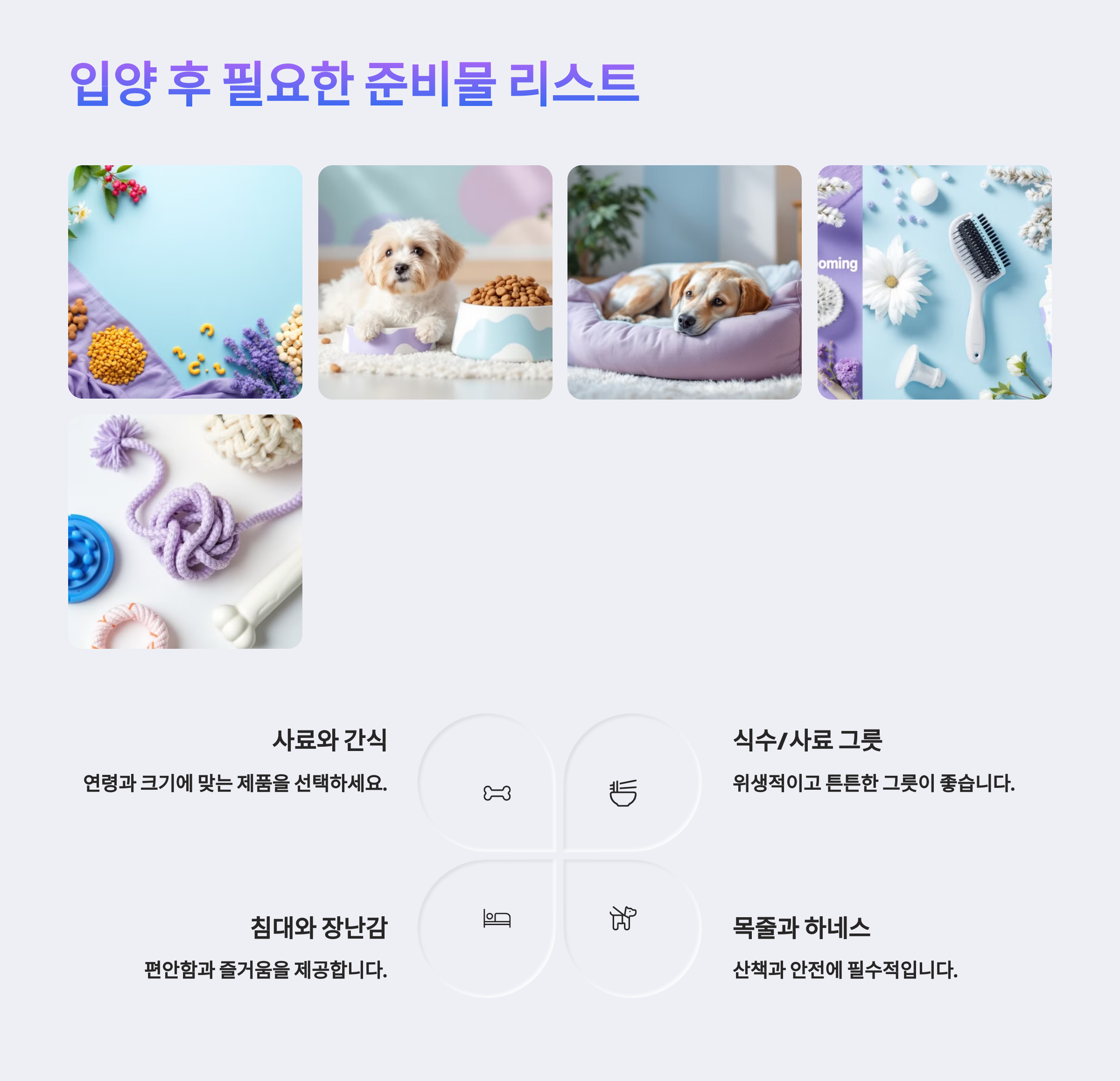 입양 절차는 다소 까다롭게 느껴질 수도 있지만, 아이의 행복과 안전을 위한 과정이에요. 다음 섹션에서는 강아지를 집에 데려온 후 꼭 필요한 준비물들을 알려드릴게요! 🎁🐕