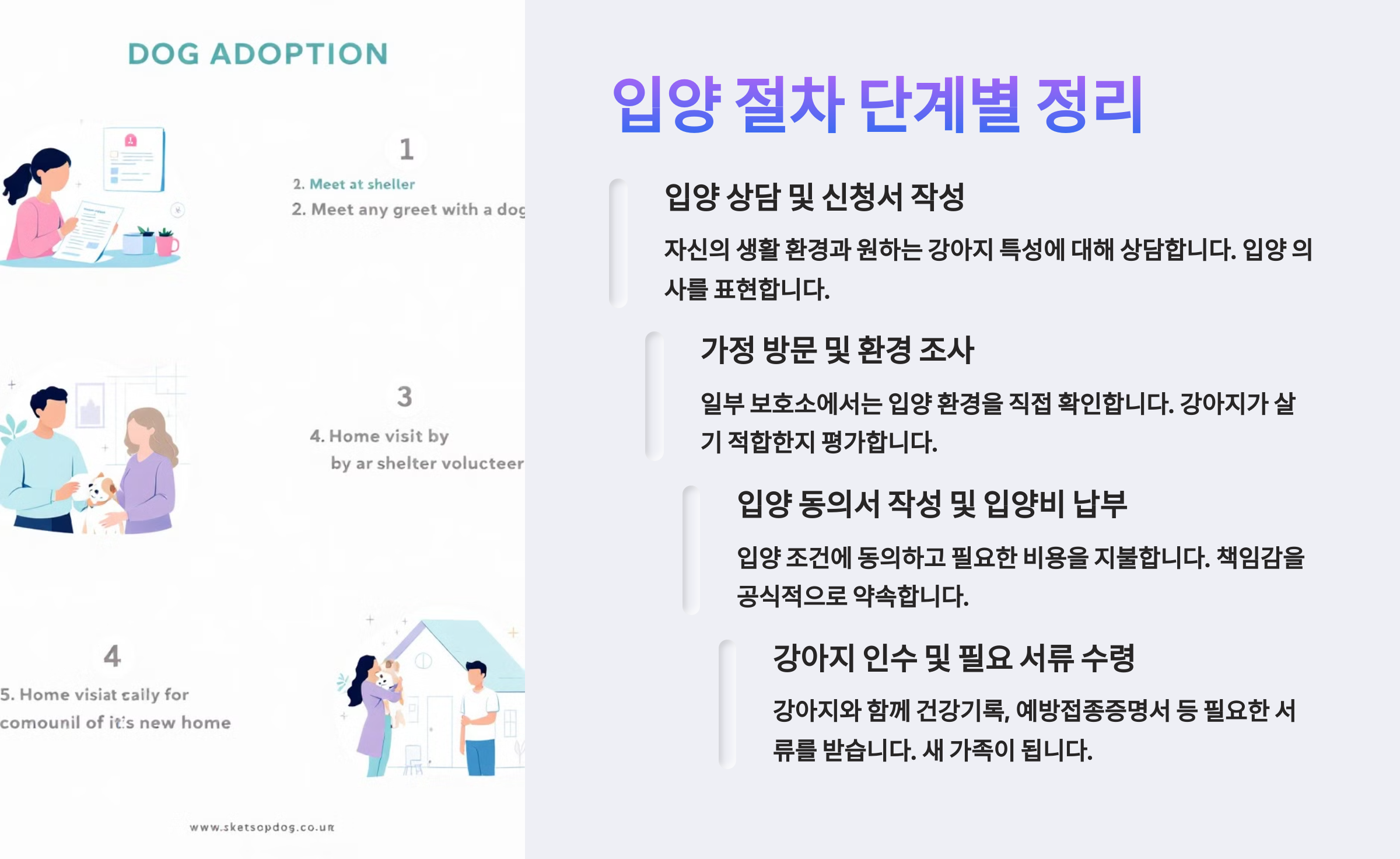 입양 경로가 다양한 만큼, 신뢰할 수 있는 기관인지, 서류 절차가 잘 갖춰져 있는지 확인하는 게 중요해요. 다음 섹션에서는 실제 입양 절차가 어떤 단계로 진행되는지 정리해드릴게요! 📝🐾