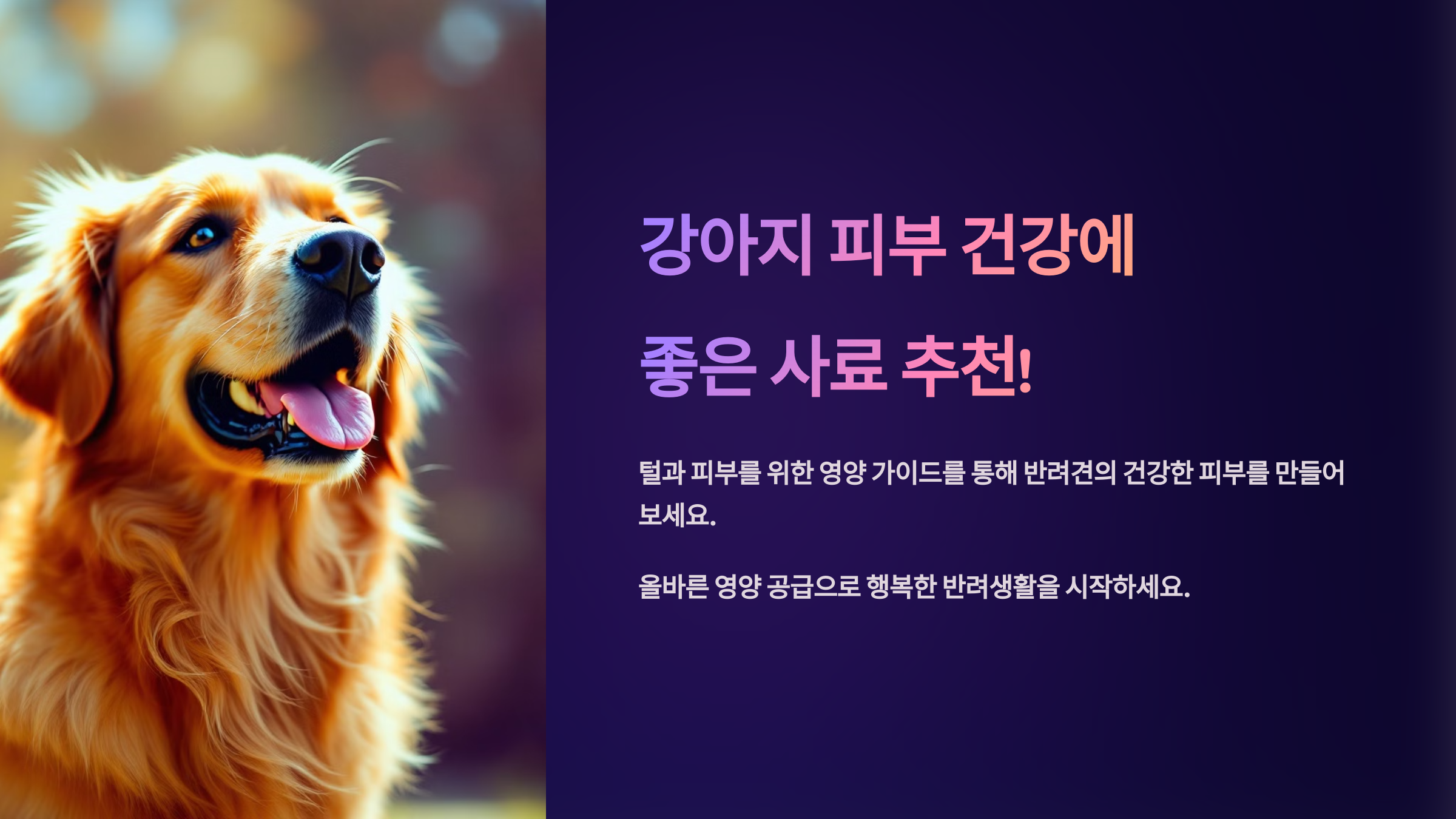 강아지가 건강한 피부와 윤기 있는 털을 유지할 수 있도록 올바른 사료를 선택하고 꾸준한 케어를 해 주세요! 🐕✨