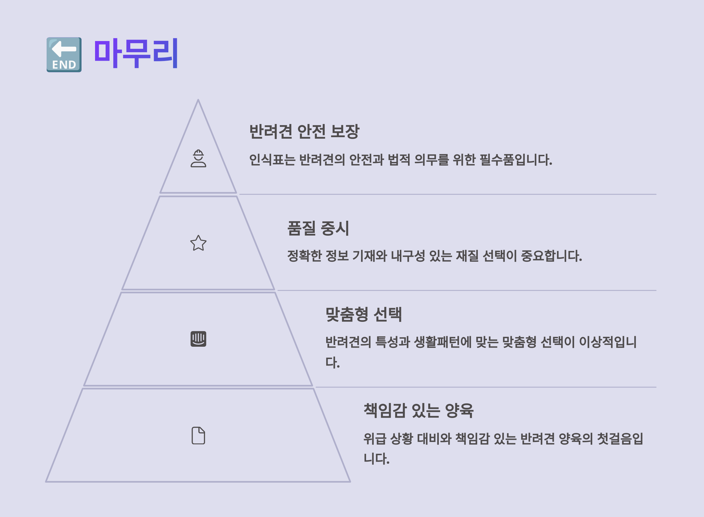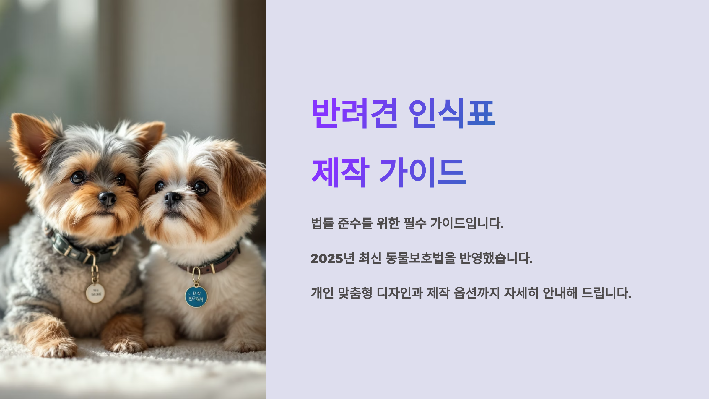 반려견과 함께하는 삶은 매일이 소중한 순간들의 연속이에요. 그런 소중한 친구가 혹시라도 길을 잃는다면… 상상만으로도 마음이 아프죠. 그렇기에 인식표는 단순한 액세서리가 아니라 아이를 지키는 작은 보험이에요. 예쁘기만 한 인식표보다는, 실속 있는 정보가 담긴 인식표가 훨씬 더 중요해요.